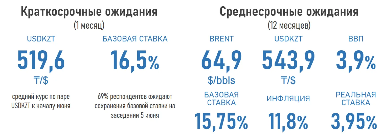 Аналитический центр Ассоциации финансистов Казахстана (АФК) представил результаты очередного опроса профессиональных участников финансового рынка в отношении некоторых индикаторов в мае 2025 года.