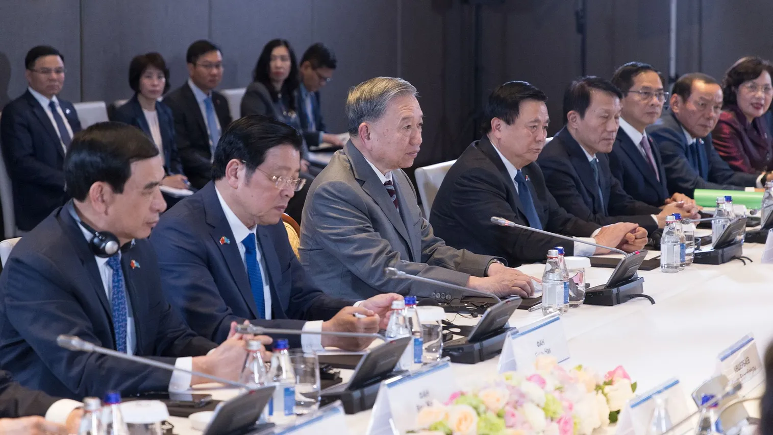 Премьер-министр Республики Казахстан Олжас Бектенов и Генеральный секретарь Центрального комитета Коммунистической партии Социалистической Республики Вьетнам То Лам, прибывший в Казахстан с государственным визитом, обсудили вопросы двустороннего торгово-экономического сотрудничества, сообщает primeminister.kz.