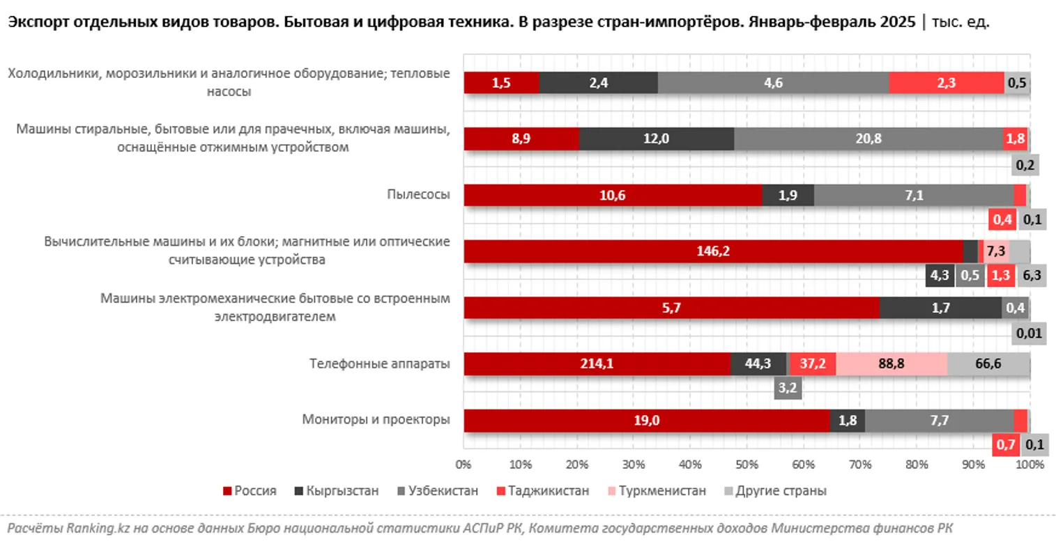 В какие страны Казахстан перепродает импортную бытовую и цифровую технику