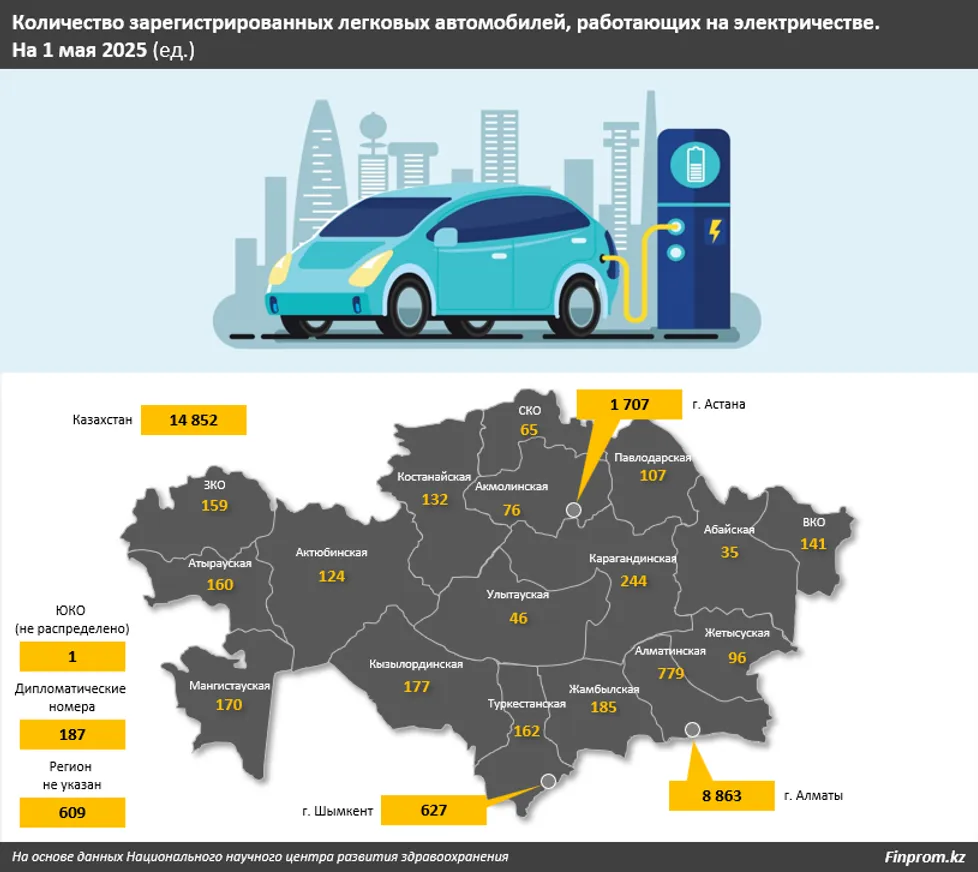 Любопытный факт: несмотря на то, что популярность электромобилей в РК начинает расти только сейчас, один такой автомобиль был зарегистрирован в стране ещё с номером, относящимся к Южно-Казахстанской области. Кроме того, на 1 мая текущего года в Казахстане было зарегистрировано 187 электромобилей с дипломатическими номерами (на 67% больше, чем годом ранее) и 609 машин с неуказанным регионом (рост — на 21,9%).