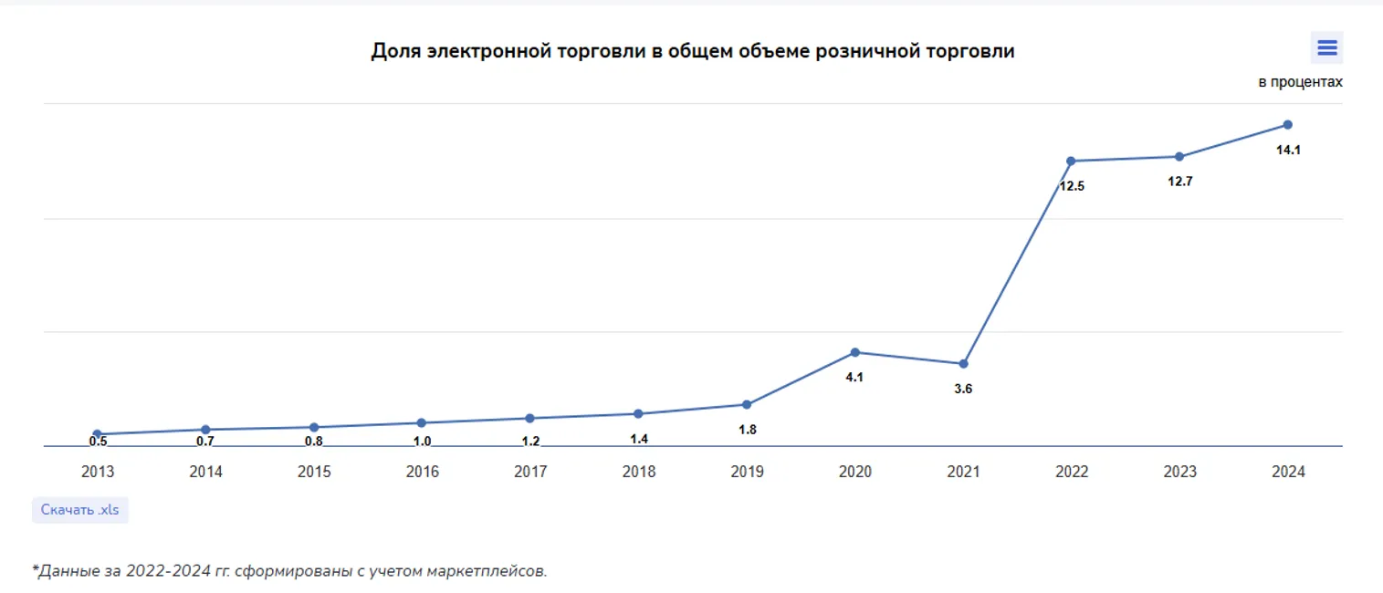 *Данные за 2022-2024 гг. сформированы с учетом маркетплейсов.