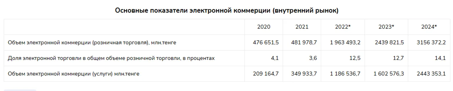 В 2024 году объем рынка e-commerce в Казахстане составил 3,1 трлн тенге