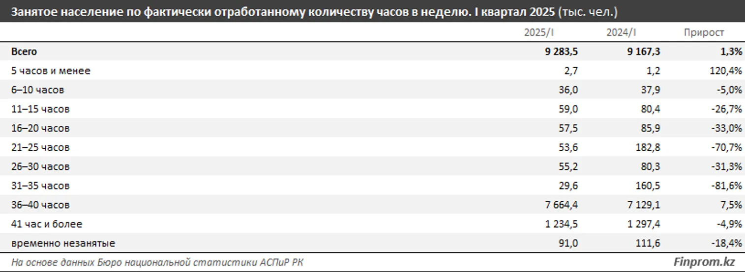 Большинство граждан трудятся в стандартном режиме — по 36–40 часов в неделю. Таких насчитывается 7,7 млн человек, что на 7,5% больше, чем годом ранее. При этом численность тех, кто перерабатывает установленную норму, наоборот, снизилась на 4,9% — до 1,2 млн человек.