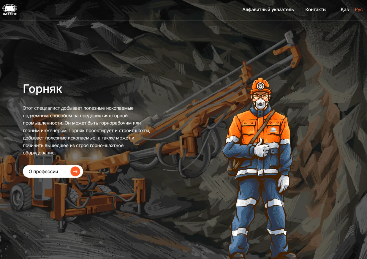 На сайте собрана информация о профессиях, по которым в «Казцинке» трудятся наибольшее число сотрудников. Посетители могут узнать, какие навыки и качества необходимы для успешной работы по каждой из них, а также отправить свое резюме или ознакомиться с актуальными вакансиями компании. Платформу можно использовать и в учебных целях как в школах, так в специализированных учебных заведениях.