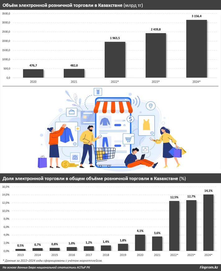 Объем е-commerce через маркетплейсы по итогам 2024 года составил 2,7 трлн тенге