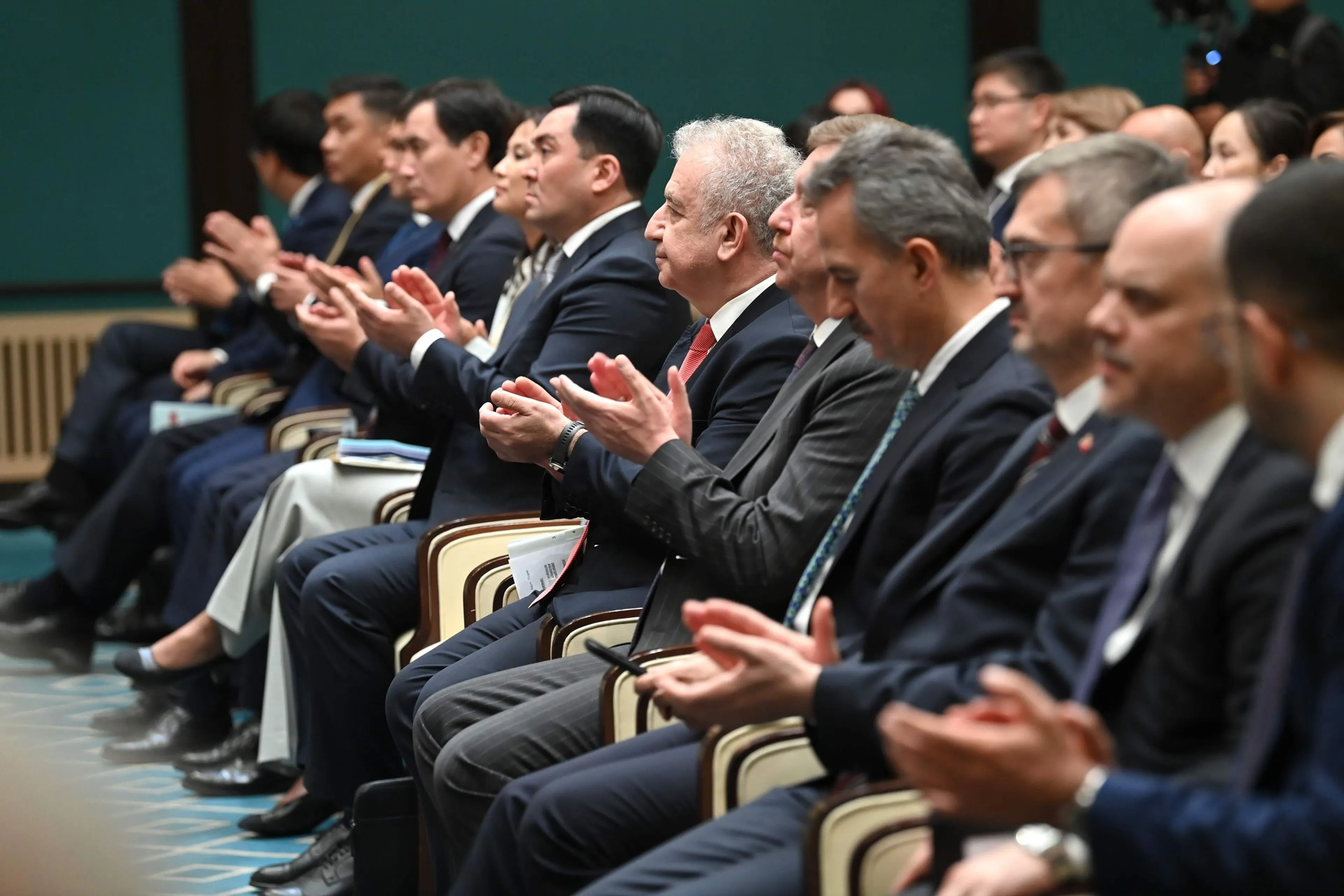 «В качестве открытого и надежного партнера мы всегда готовы оказать поддержку турецким инвесторам и приглашаем ваши компании к участию в масштабных долгосрочных проектах. Прекрасные возможности открываются для укрепления транспортно-логистических связей. Нам следует максимально использовать стратегическое расположение наших стран. В настоящее время около 85% грузов, перевозимых по суше между Европой и Китаем, проходит через Казахстан. Большое значение также имеет развитие Транскаспийского международного транспортного маршрута, известного как Средний коридор. Данная инициатива отвечает интересам обеих стран. Казахстан осуществляет модернизацию железной дороги, строительство автомобильных дорог и обновление инфраструктуры для активизации судоходства на Каспийском море. Приглашаем турецких инвесторов к активному участию в этих проектах. Наше правительство готово предоставить особые льготы турецким предпринимателям», – заявил президент.