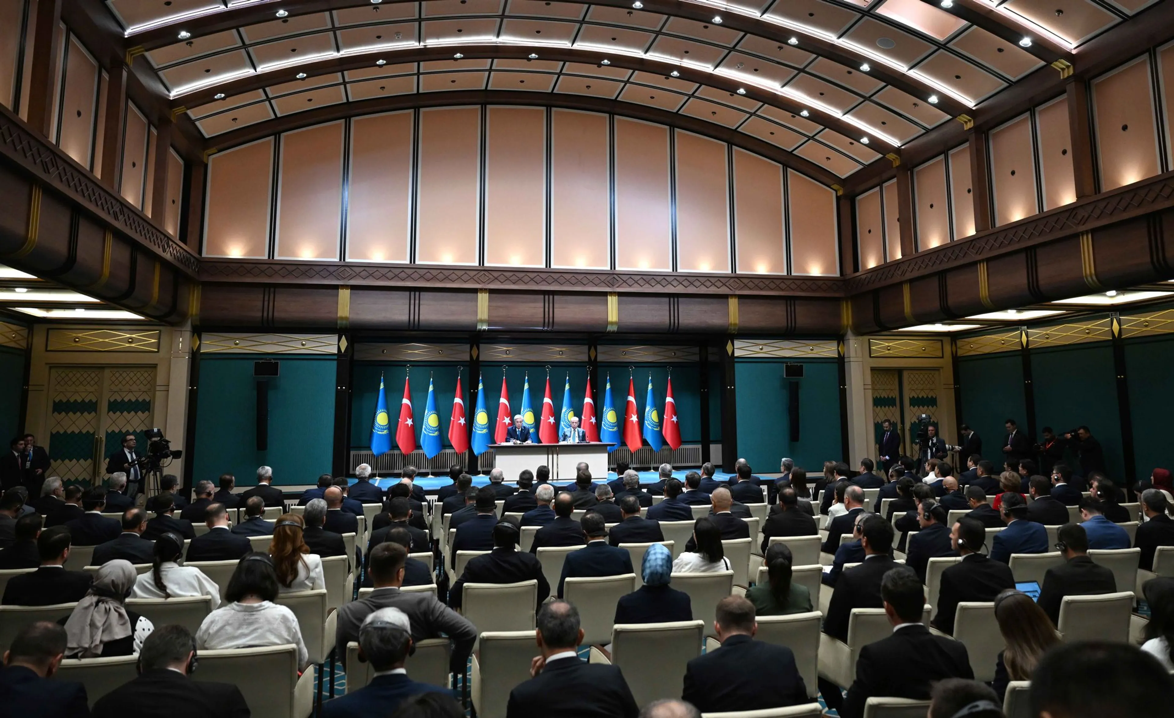 По завершении двусторонних переговоров и участия в 5-м заседании Совета стратегического сотрудничества высокого уровня президенты Казахстана и Турции выступили с заявлением для прессы.
