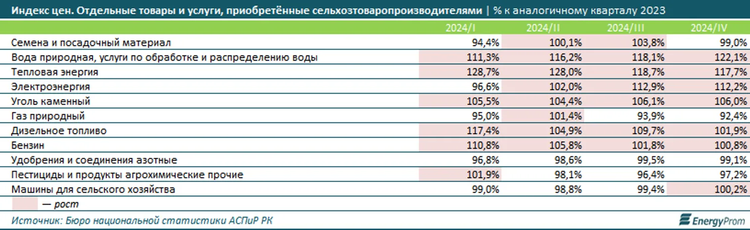 В таблице мы представили индексы цен на отдельные виды продукции и услуг, которые фермеры приобретали в прошлом году. Один из ключевых факторов ценообразования на овощи — дизельное топливо. В первом квартале 2024-го оно подорожало на 17,4% в годовом выражении, во втором — на 4,9%, в третьем — на 9,7%. Существенно выросла за прошлый год и стоимость природной воды: на 11–22%. Владельцы теплиц также почувствовали удорожание тепловой энергии на 18–29%. В меньшей степени на себестоимость урожая оказали влияние цены на пестициды, посадочный материал, агромелиоративные услуги.
