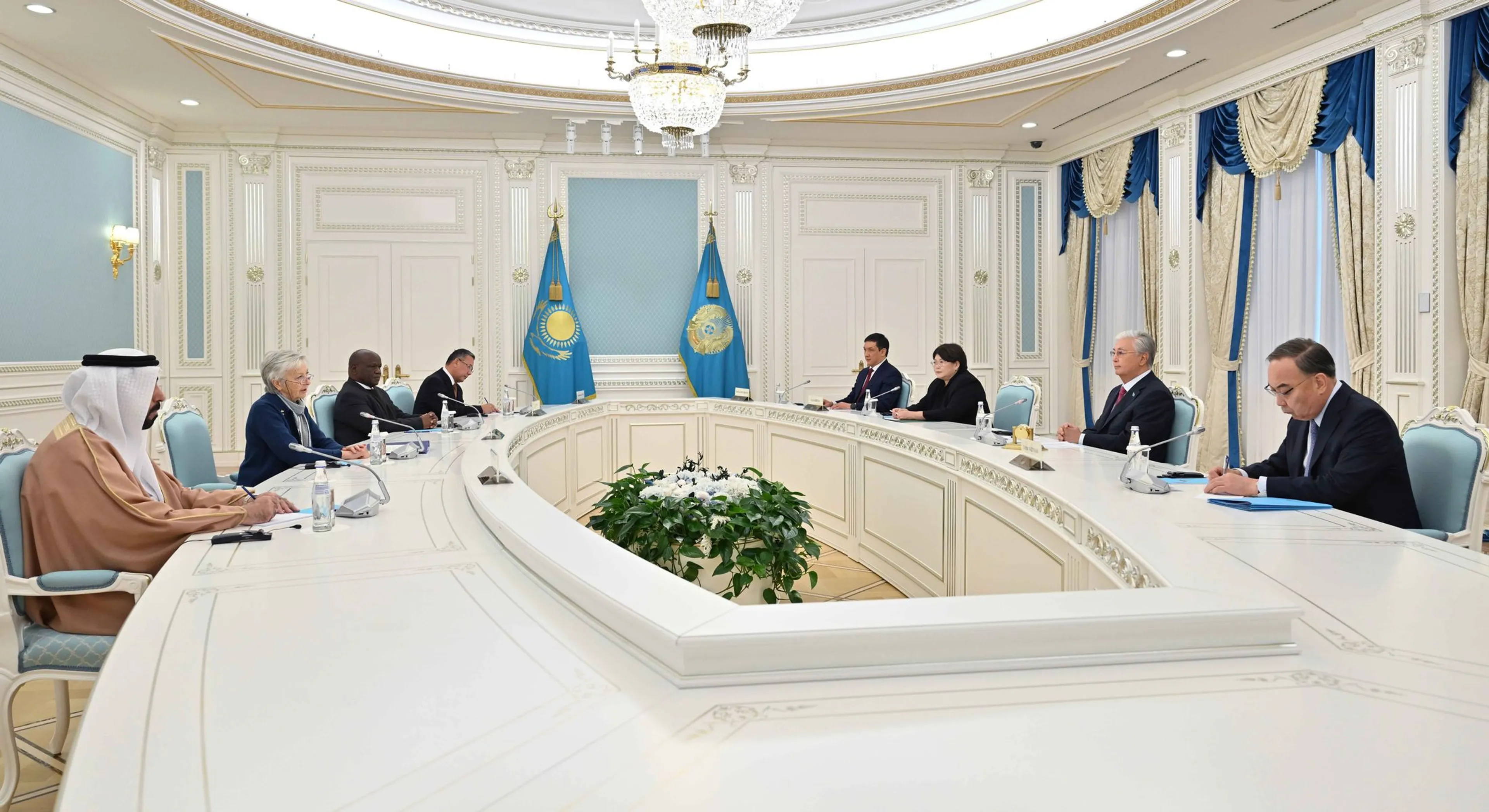 Президент Венецианской комиссии Клэр Бази Малори отметила, что Казахстан в качестве важного партнера Совета Европы принимает активное участие в различных конвенциях и проводит эффективные институциональные реформы по усилению верховенства закона. Председатель Федерального высшего суда ОАЭ Мохаммед Хамад Мохаммед аль Бади аль Захри дал высокую оценку стратегическому сотрудничеству между Казахстаном и Эмиратами. Председатель Конференции органов конституционной юрисдикции Африки Люк Малаба подчеркнул, что с интересом наблюдает общественно-политические преобразования в Казахстане. Председатель Конституционного суда Монголии Байасгалан Гунгаа сообщил, что прошлогодний визит президента Касым-Жомарта Токаева в Монголию придал существенный импульс всестороннему взаимодействию двух стран. В завершение глава государства отметил, что Казахстан рассчитывает на продолжение сотрудничества между органами конституционного надзора и пожелал успехов предстоящему форуму.