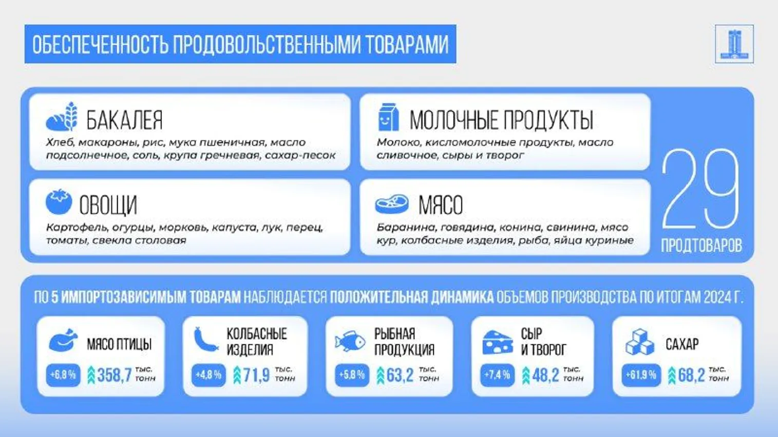 Ключевые направления «Заказа на инвестиции» – производство продуктов с высокой импортозависимостью: мяса птицы (обеспеченность 79%), сыров и творога (52%), сахара (33%), колбасных изделий (60%), рыбной продукции (67%). Остальные проекты направлены на экспорт и глубокую переработку – зерна, картофеля, плодоовощных культур, шкур и шерсти, а также строительство молочно-товарных ферм, тепличных комплексов и хранилищ.