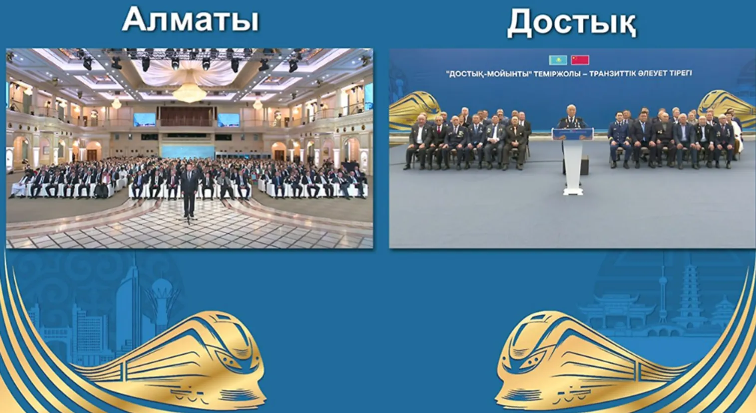 «Мы становимся свидетелями официального открытия второй линии железной дороги Достык – Мойынты, которая является действительно исключительно важным инфраструктурным проектом. Несомненно, он придаст особый импульс развитию и повышению эффективности транспортно-логистической системы Казахстана. 35 лет назад был запущен проект «Достык – Алашанькоу». Соединение железнодорожных путей Казахстана и Китая стало историческим событием для нашей страны. На сегодняшнюю церемонию приглашены ветераны, участвовавшие в строительстве этой дороги. Выражаю вам искреннюю благодарность. В своем Послании я отметил, что транспортно-логистическая отрасль является движущей силой экономики и одним из основных факторов укрепления международных связей. Казахстан обладает большим потенциалом в этой сфере. Великий Шелковый путь проходил через Казахстан и Центральную Азию. Казахская земля издавна считается золотым мостом между Китаем и Европой. Китай – наш вечный близкий сосед и надежный союзник. Мы неизменно поддерживаем друг друга. Отношения между двумя народами основаны на прочной дружбе и взаимном доверии. Наши страны объединяет общее видение будущего. Поступательно укрепляется всестороннее сотрудничество. Особое значение имеет глобальный проект «Один пояс, один путь». Как известно, в 2013 году именно в Казахстане председатель Си Цзиньпин объявил об этой инициативе. Мы всесторонне поддерживаем данный проект и активно участвуем в его реализации, поскольку он полностью отвечает интересам нашей страны. Яркое тому подтверждение – вторая линия железной дороги Достык – Мойынты», – считает президент.