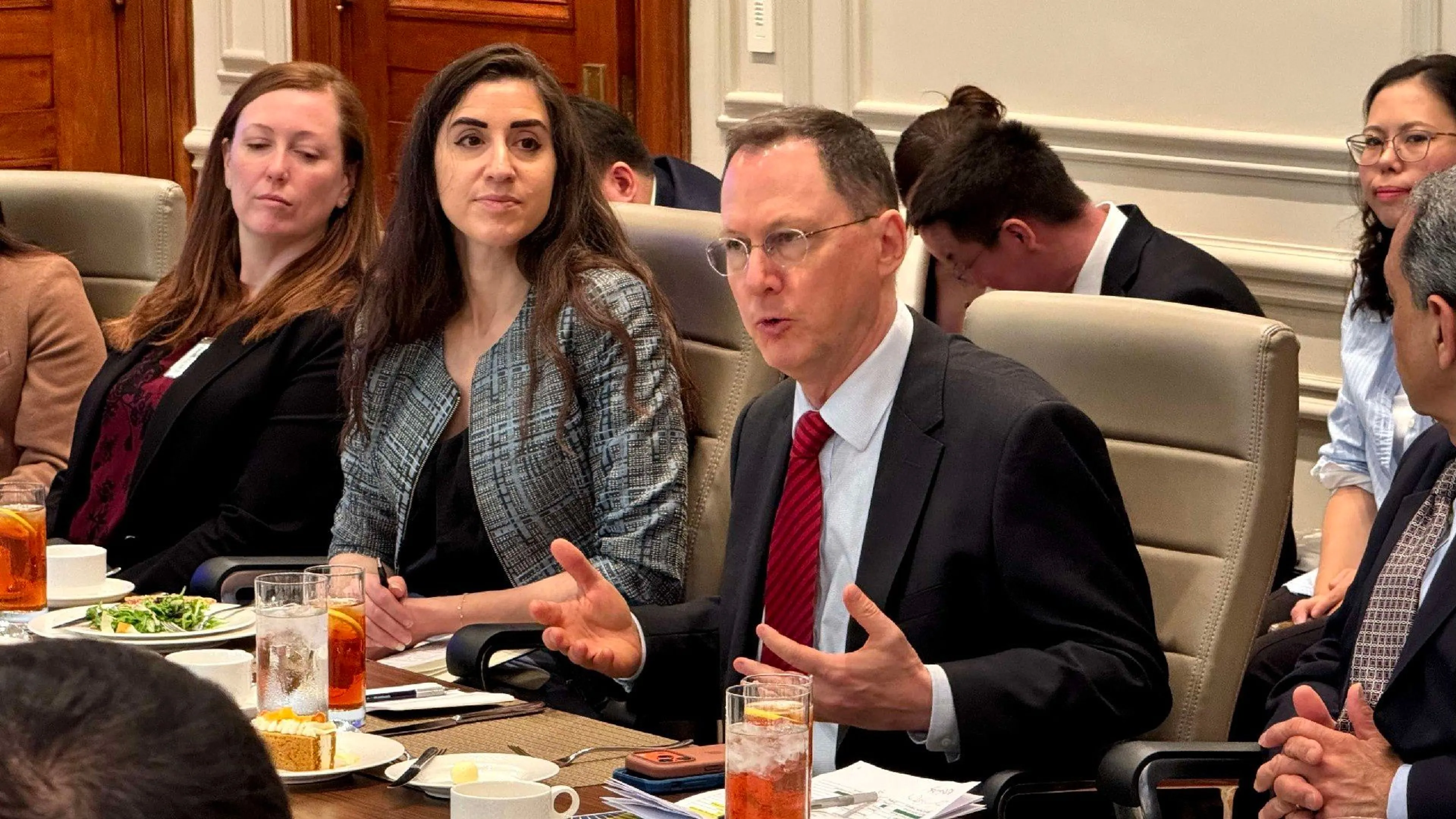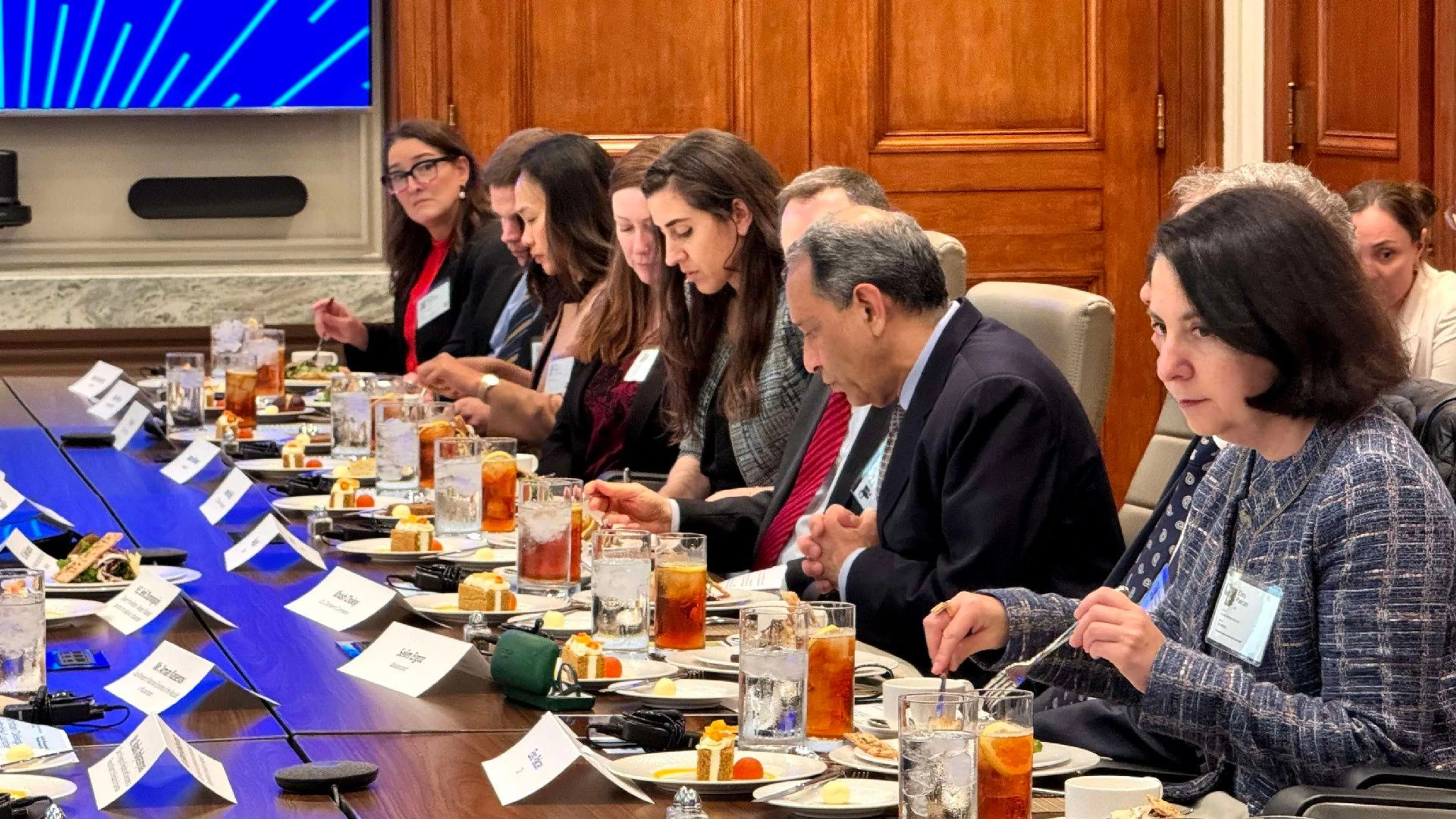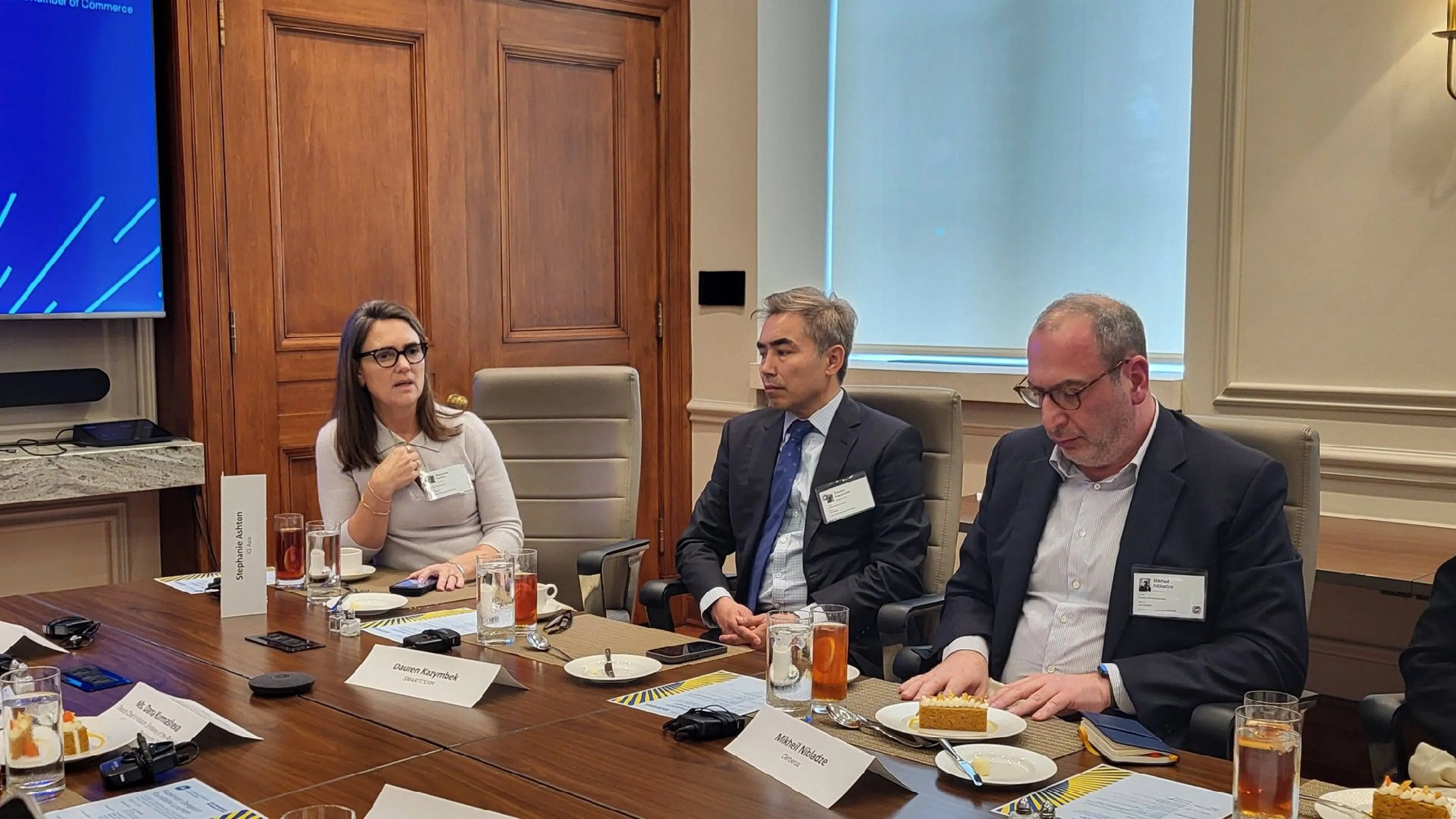 Американскую сторону представили старший вице-президент по делам Ближнего Востока, Турции и Центральной Азии Торговой палаты США Куш Чокси, топ-менеджеры ведущих корпораций Chevron, Brownstein, Bectel, ExxonMobil, Citi, Mastercard, Boeing, LanzaJet и другие.