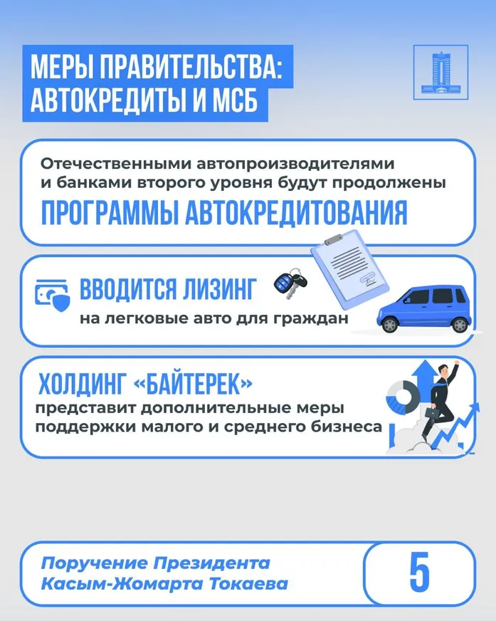 «Внедряется механизм лизинга на покупку легкового автотранспорта для физических лиц. Это направлено на расширение возможностей граждан для приобретения автомобилей», - указывается в сообщении.