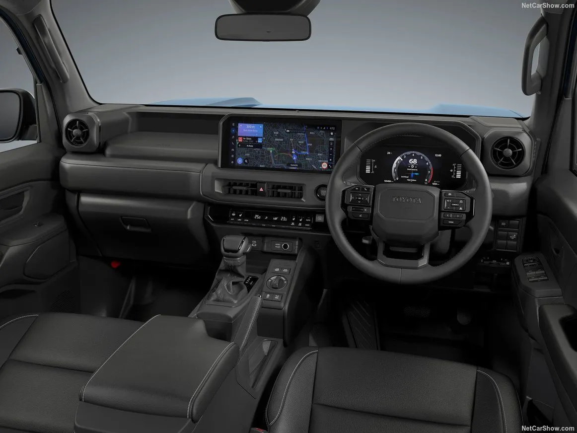 Внешне с FJ Cruiser его роднят только выпукло-рубленые передние крылья, выступающие за пределы кузова задние фонари и запаска на пятой двери. Гораздо больше у новичка сходства с последним Land Cruiser Prado 250. Это и стиль передка с двумя видами фар - прямоугольными или круглыми, - и форма капота, и «ступенька» на подоконной линии бокового остекления.