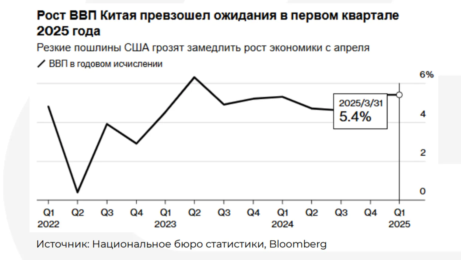 На этом фоне неожиданно позитивной оказалась статистика из Китая: ВВП за I квартал вырос на 5,4%, а розничные продажи и промышленное производство также опередили ожидания (+5,9% и +7,7% соответственно). Это укрепило позиции азиатских рынков и поддержало глобальный аппетит к риску, несмотря на локальные потрясения.