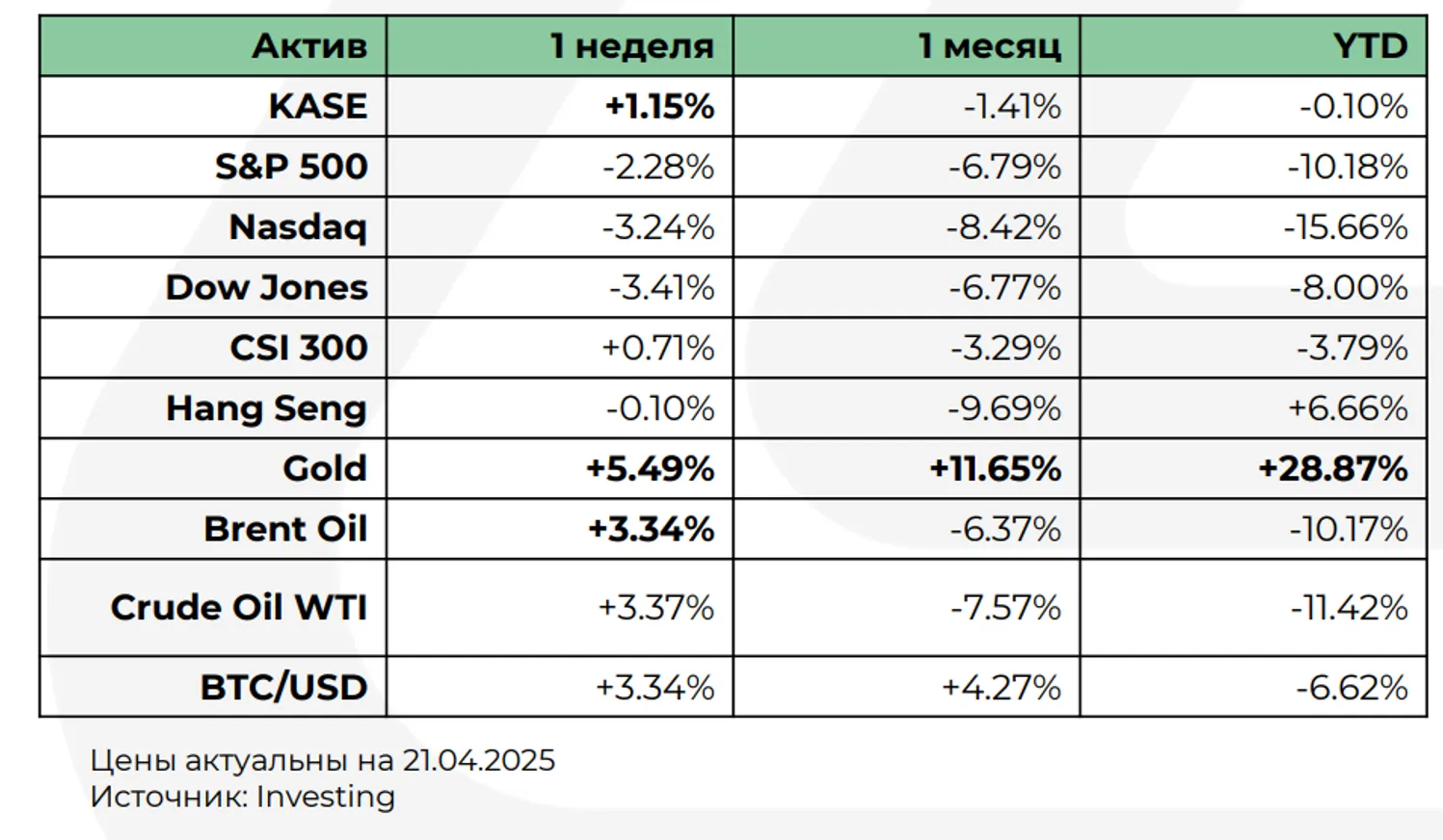 Обзор рынков за 14-18 апреля 2025 года подготовил аналитик Департамента аналитики и исследований BCC Invest Алдияр Ануарбеков.