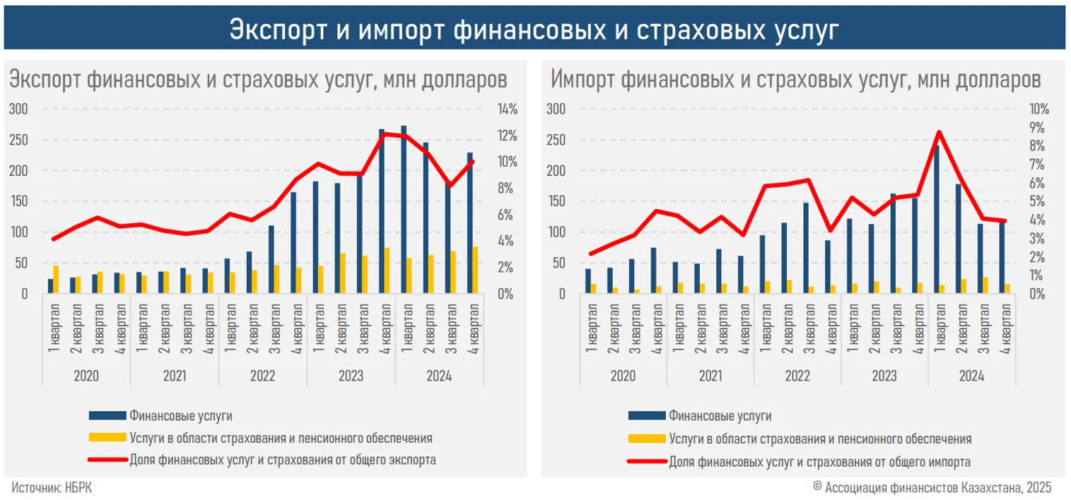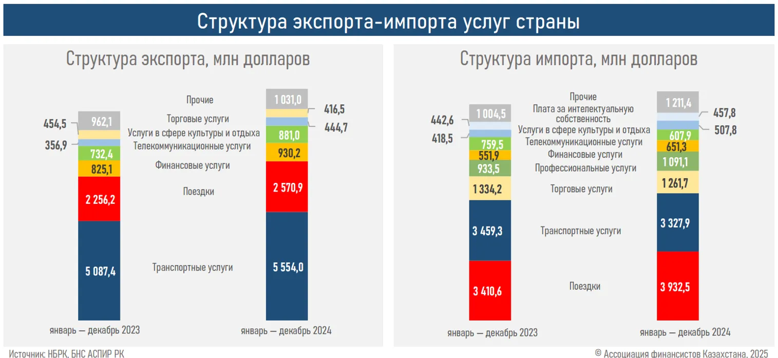 Аналитический центр Ассоциации финансистов Казахстана (АФК) представил обзор внешней торговли услугами за 2024 год.