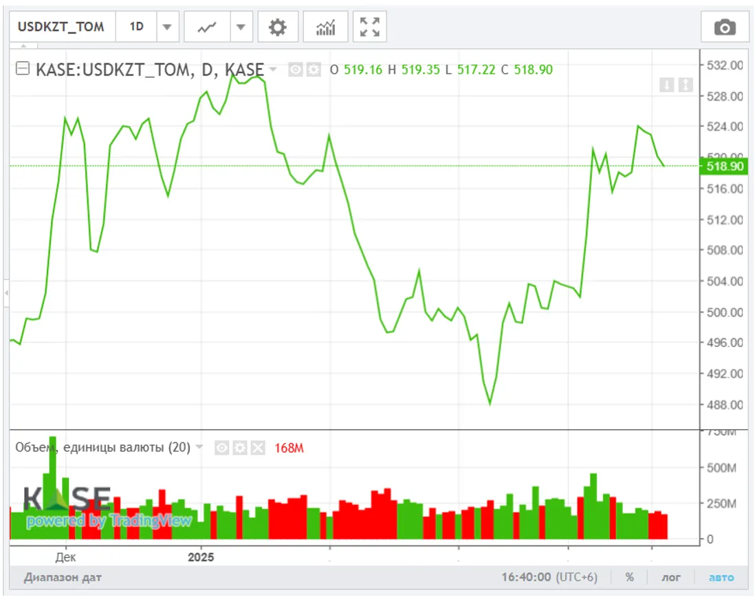 Во вторник по итогам торгов курс по паре USD/KZT снизился до 518,19 тенге за доллар (-3,03 тенге), что в значительной мере могло быть связано с внутренними факторами. Стабильное предложение инвалюты со стороны НБРК, экспортёров и субъектов КГС могло превысить спрос на инвалюту и поддержать курс национальной валюты. Дополнительную поддержку тенге могло оказать частичное удовлетворение спроса на инвалюту со стороны отдельных участников. Среди внешних факторов позитивную динамику нацвалюты поддержали укрепление рубля и рост котировок нефти на фоне новых санкций США против иранской нефти.