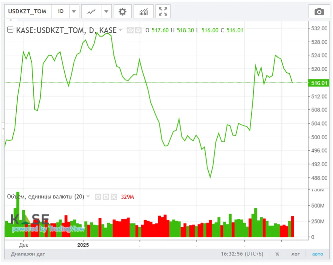 В четверг по итогам торгов курс по паре USD/KZT снизился до уровня 517,10 тенге за доллар (-1,28 тенге). Поддержку курсу тенге, вероятно, обеспечило стабильное предложение инвалюты со стороны НБРК (~1,1 млрд долларов в апреле), экспортёров и субъектов КГС, которое очевидно превысило текущий спрос. Дополнительным фактором укрепления стала частичная реализация спроса на валюту отдельными участниками рынка ранее, что ограничило давление на тенге. На внешнем фоне позитивное влияние оказали рост нефтяных котировок во время торговой сессии и смягчение напряженности в торговых отношениях между Китаем и США.