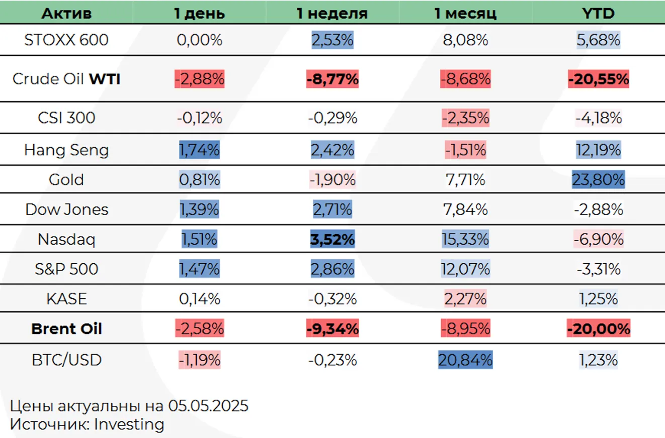 Обзор рынков за 28 апреля - 2 мая 2025 года подготовил аналитик Департамента аналитики и исследований BCC Invest Алдияр Ануарбеков.