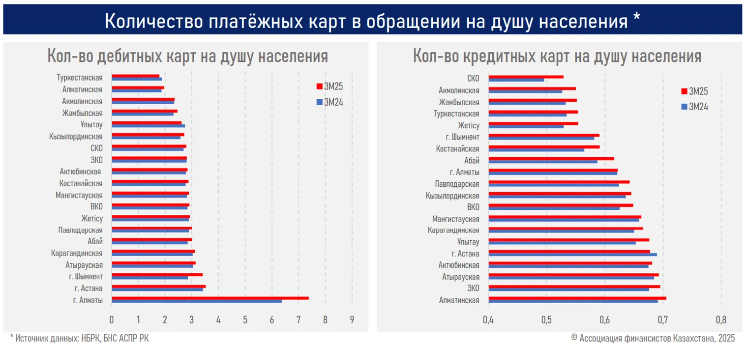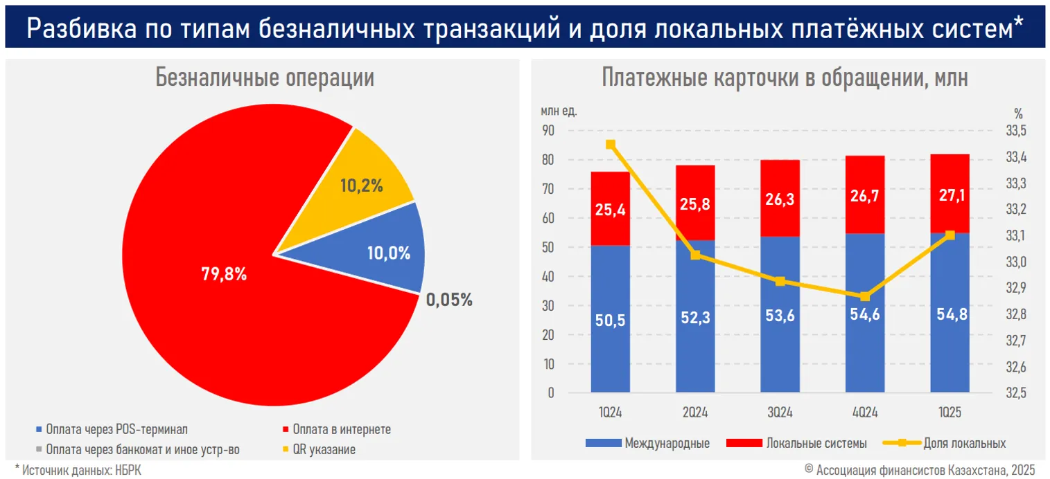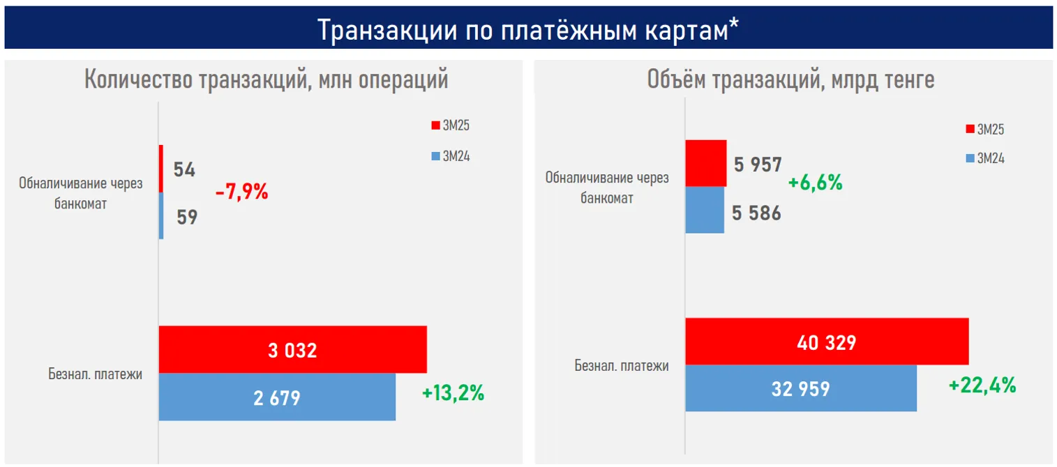 Аналитический центр Ассоциации финансистов Казахстана (АФК) опубликовал обзор статистики по безналичным карточным операциям за первый квартал 2025 года.