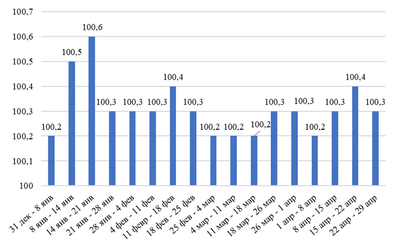 Диаграмма 1. Индекс цен на социально значимые продовольственные товары: