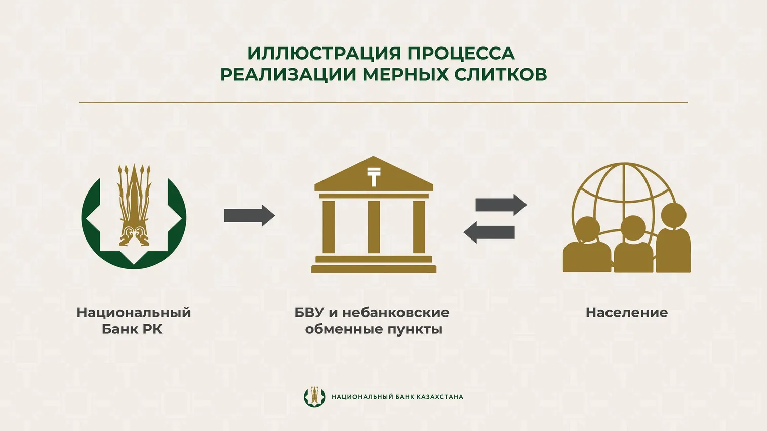 Таким образом, за I квартал 2025 года БВУ и отдельными небанковскими обменными пунктами населению с учетом обратного выкупа продано 11 084 мерных слитка общим весом 176 килограмм. Общее количество реализации с начала действия программы составляет 233 764 золотых слитка общим весом 8,1 тонна.