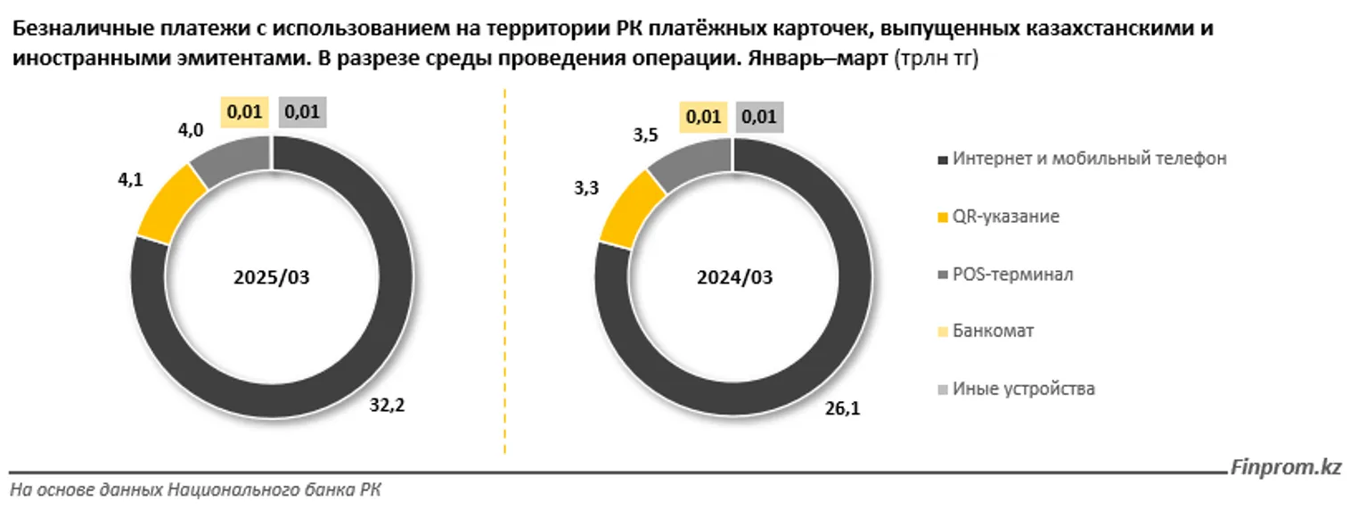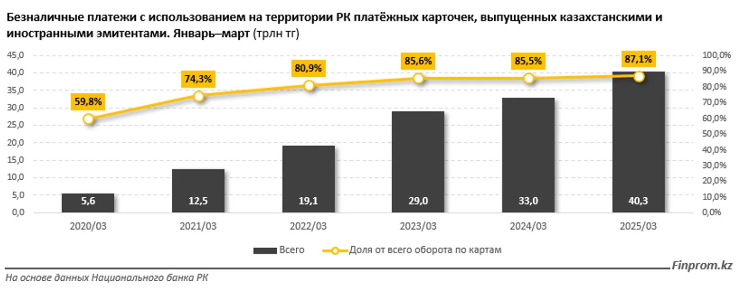 Наглядный пример роста в секторе: объем безналичных платежей в РК за первый квартал 2025 года был больше, чем в совокупности за весь 2020 год (34,6 трлн тенге).