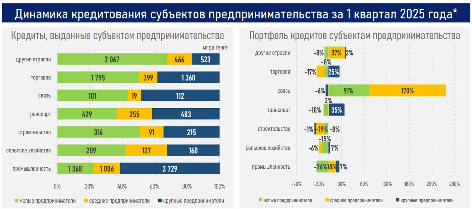 Аналитический центр Ассоциации финансистов Казахстана (АФК) опубликовал обзор кредитования субъектов предпринимательства за первый квартал 2025 года.