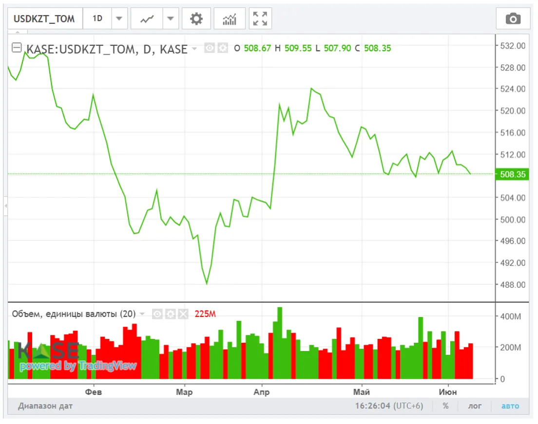 По итогам валютных торгов вторника курс по паре USD/KZT снизился и составил 508,39 тенге за доллар (-0,15 тенге). При этом объем торгов продолжил расти и достиг 225 млн долларов (+23 млн). Вероятно, положительное влияние внешних факторов (рост нефтяных котировок, снижение индекса доллара и укрепление рубля) наряду с локальными факторами способствовали укреплению нацвалюты. В начале текущей недели на внутреннем рынке превалируют продавцы инвалюты (экспортеры и зарубежные инвесторы, заинтересованные в покупках ГЦБ), объемы продаж которых полностью покрывали потребности в ней (оплата импорта и платежи по погашению/обслуживанию внешнего долга).