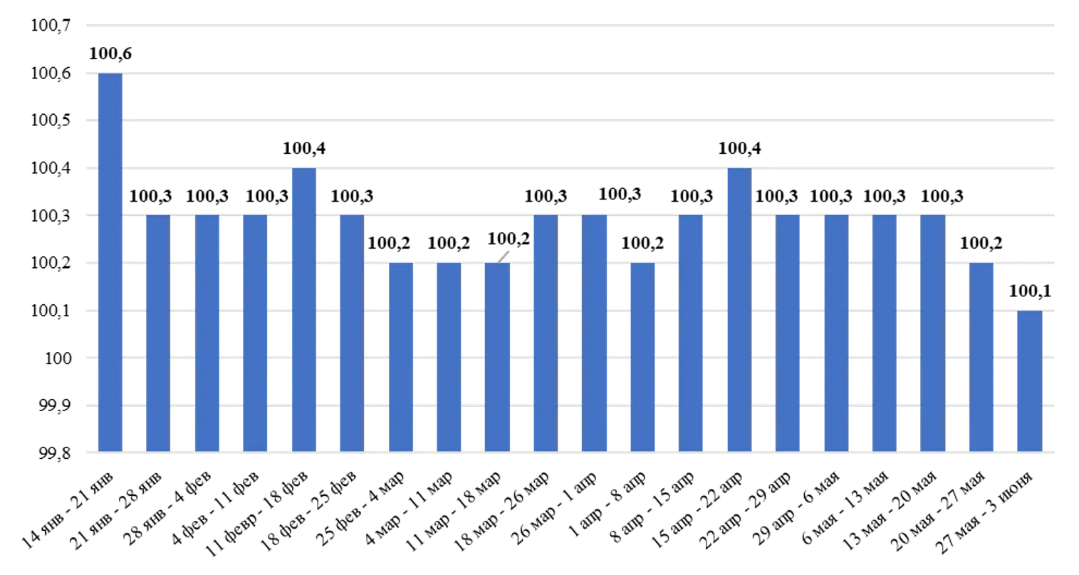 Сегодня в фокусе внимания – публикация данных о недельной динамики цен на СЗПТ и об объёме реализации товаров и услуг.
