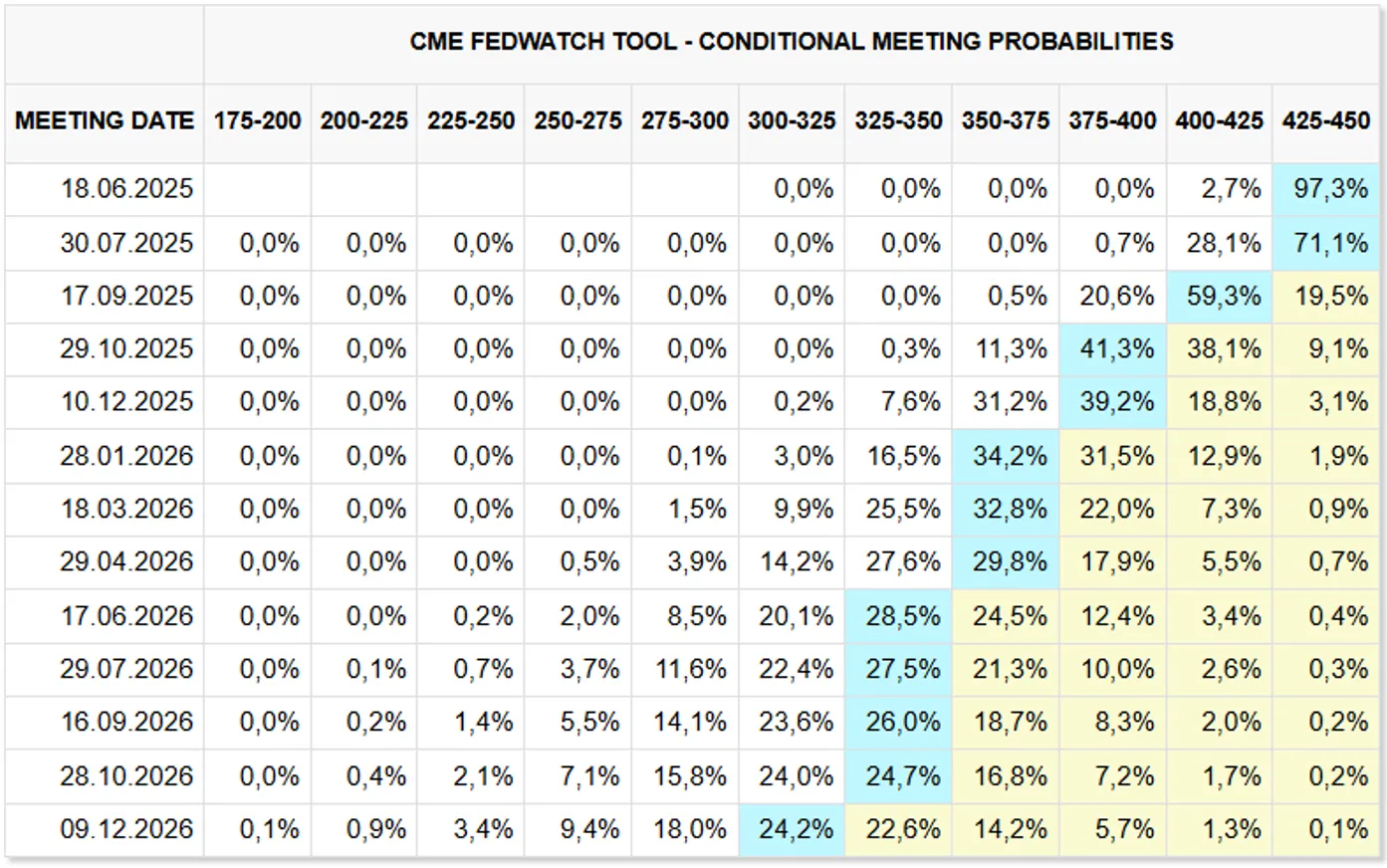 Золото продемонстрировало уверенный рост на 1,9% и достигло 3 405 долларов за унцию, максимального уровня за последний месяц. Это отражает усиление спроса на защитные активы на фоне геополитической напряжённости и ожиданий смягчения денежно-кредитной политики в США. Доходность 10-летних казначейских облигаций снизилась до 4,37% с 4,41%, сигнализируя об увеличении интереса инвесторов к безрисковым активам и возможном пересмотре процентных ожиданий в сторону снижения. Одновременно индекс доллара США опустился на 0,8% – до 97,83, достигнув минимума с 2022 года. Это указывает на ослабление позиций доллара на фоне растущей неопределённости в торговой политике и вероятности более мягкой риторики со стороны ФРС.