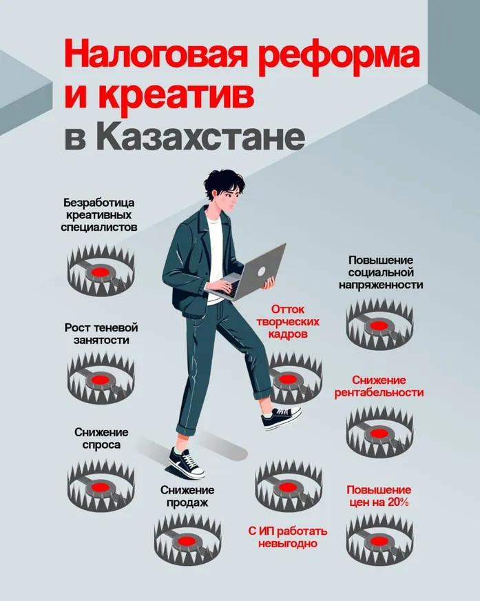 · Для экономики в целом — рост неформальной занятости, снижение налоговых поступлений, падение конкурентоспособности малого бизнеса, отток кадров за рубеж. Пострадают не только креативные индустрии, но и смежные отрасли: цифровые продукты, искусственный интеллект, медиа, кино.