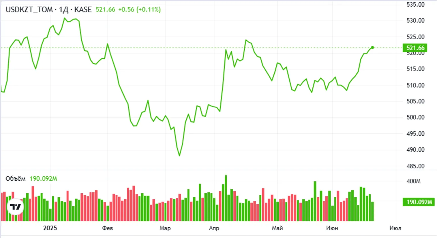 Между тем на сегодняшней сессии пара USD/KZT (10:25 ALA) торгуется на уровне 519,99 тенге за доллар.