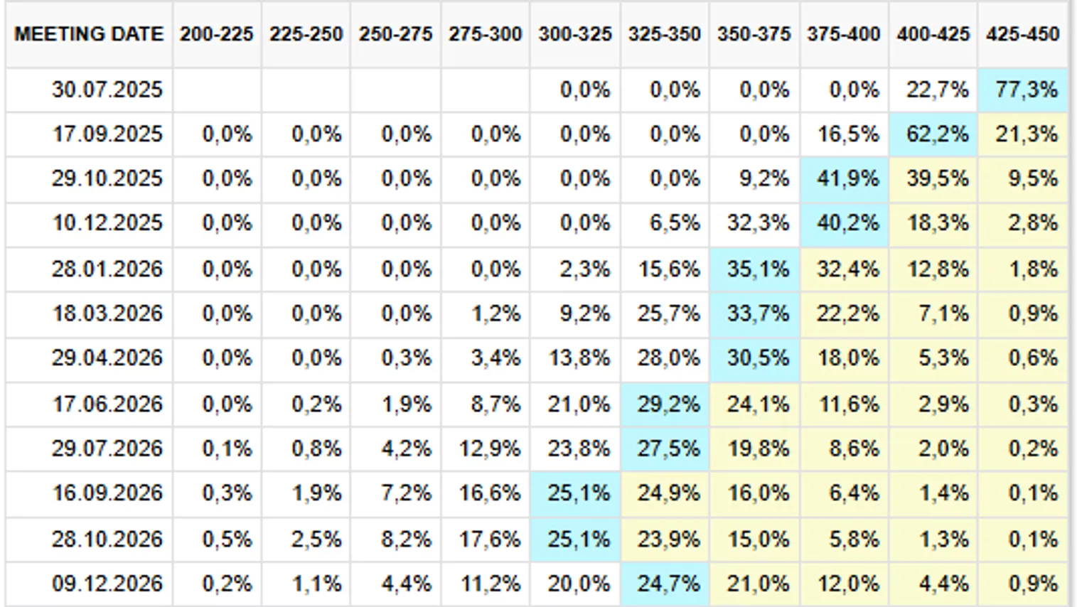 Диаграмма 2. Вероятность изменения процентной ставки ФРС США: