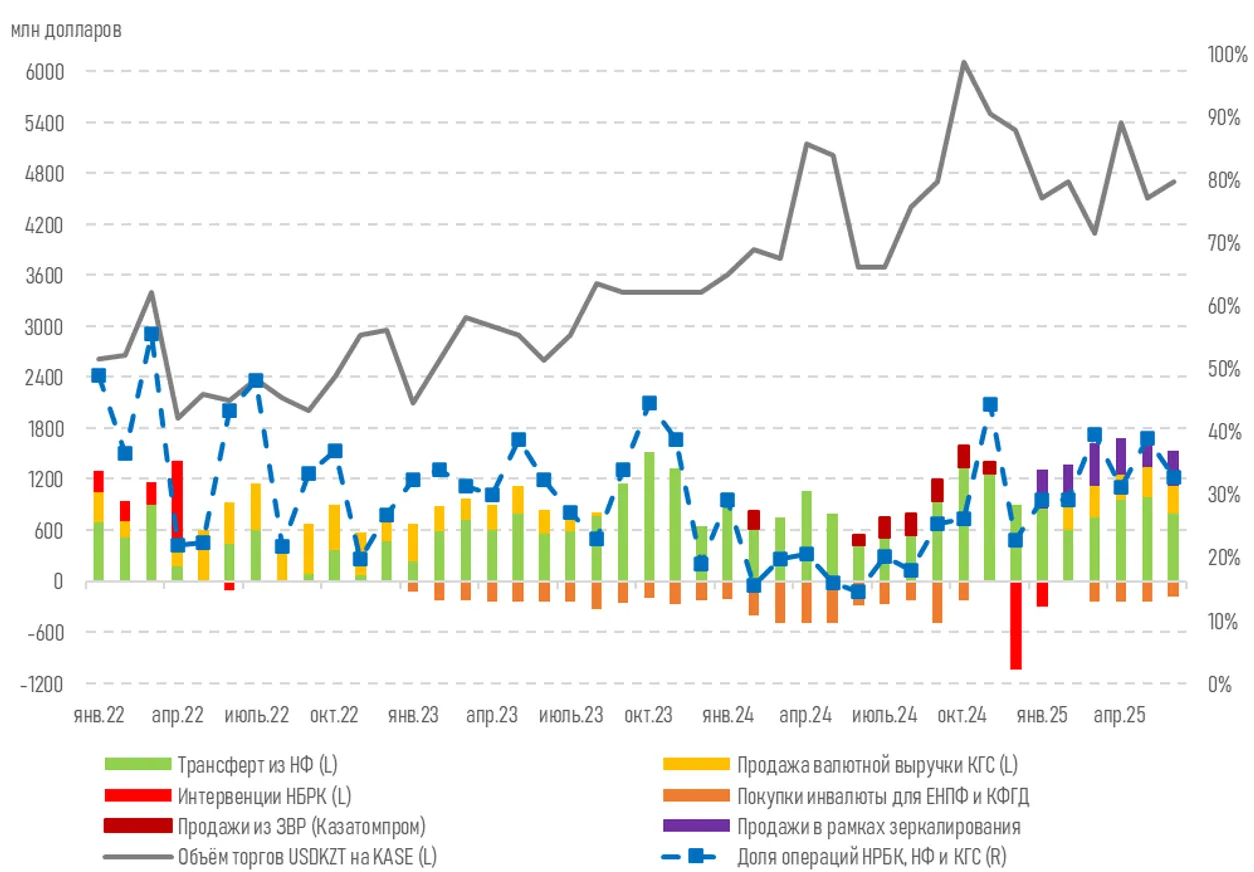 Диаграмма 1. Интервенции НБРК на внутреннем валютном рынке: