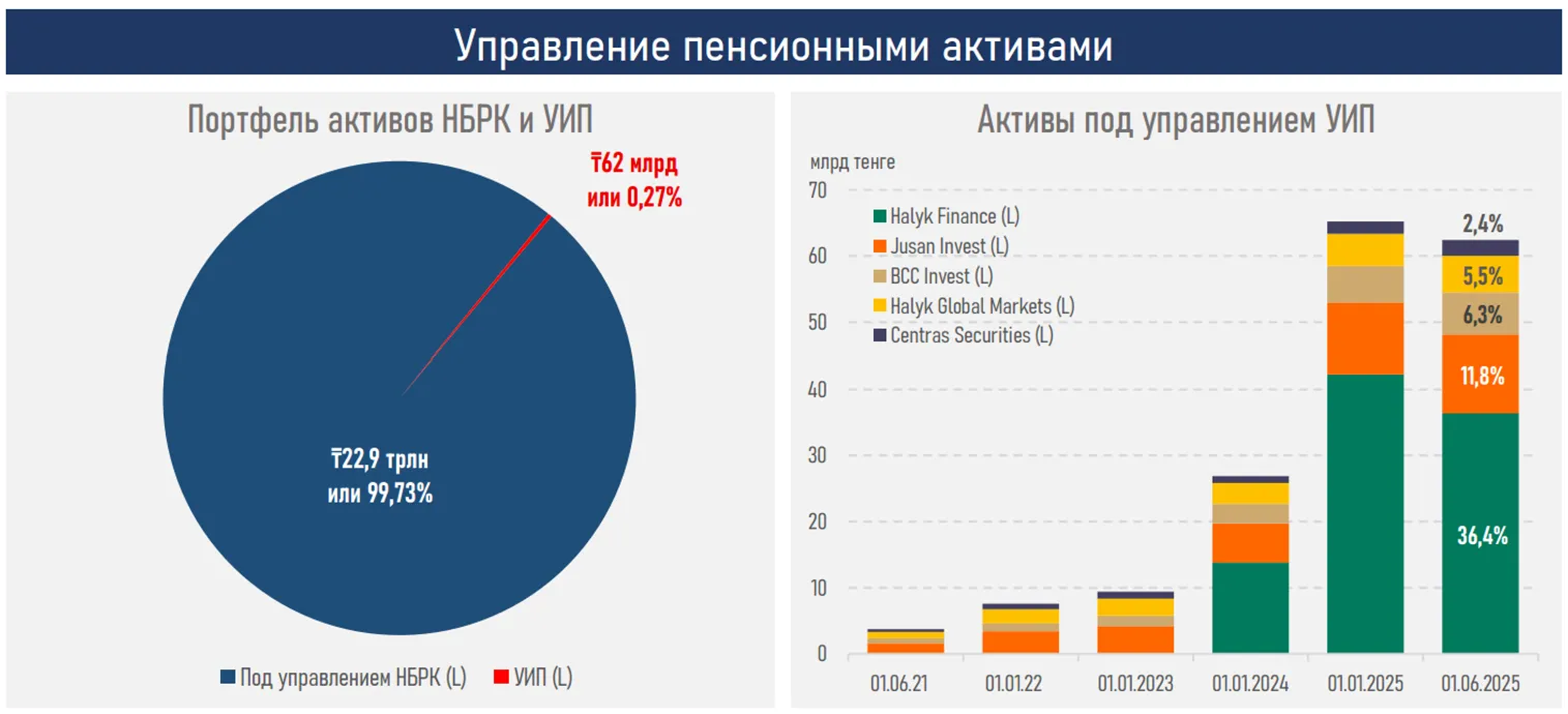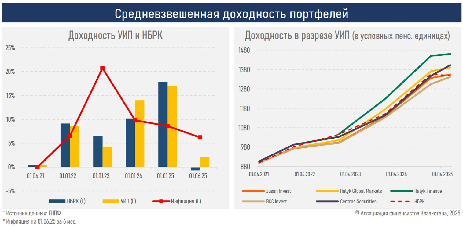 С момента внедрения возможности частного управления практически все УИП опережают Нацбанк РК в росте условной единицы стоимости пенсионных активов, что подчёркивает важность наличия выбора и конкуренции в управлении пенсионными активами в интересах вкладчиков.