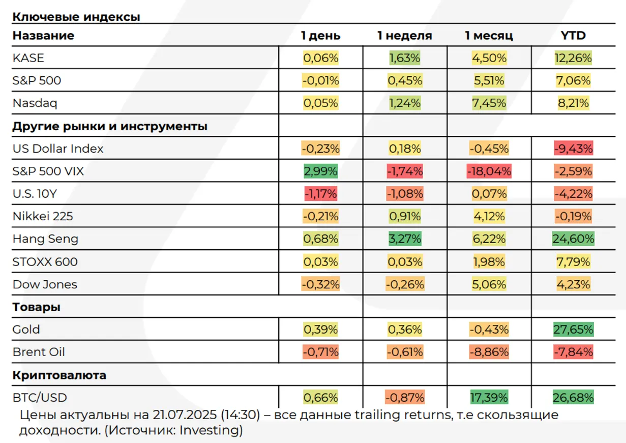 Обзор рынков за 14 -18 июля 2025 года подготовил аналитик Департамента аналитики и исследований BCC Invest Алдияр Ануарбеков.