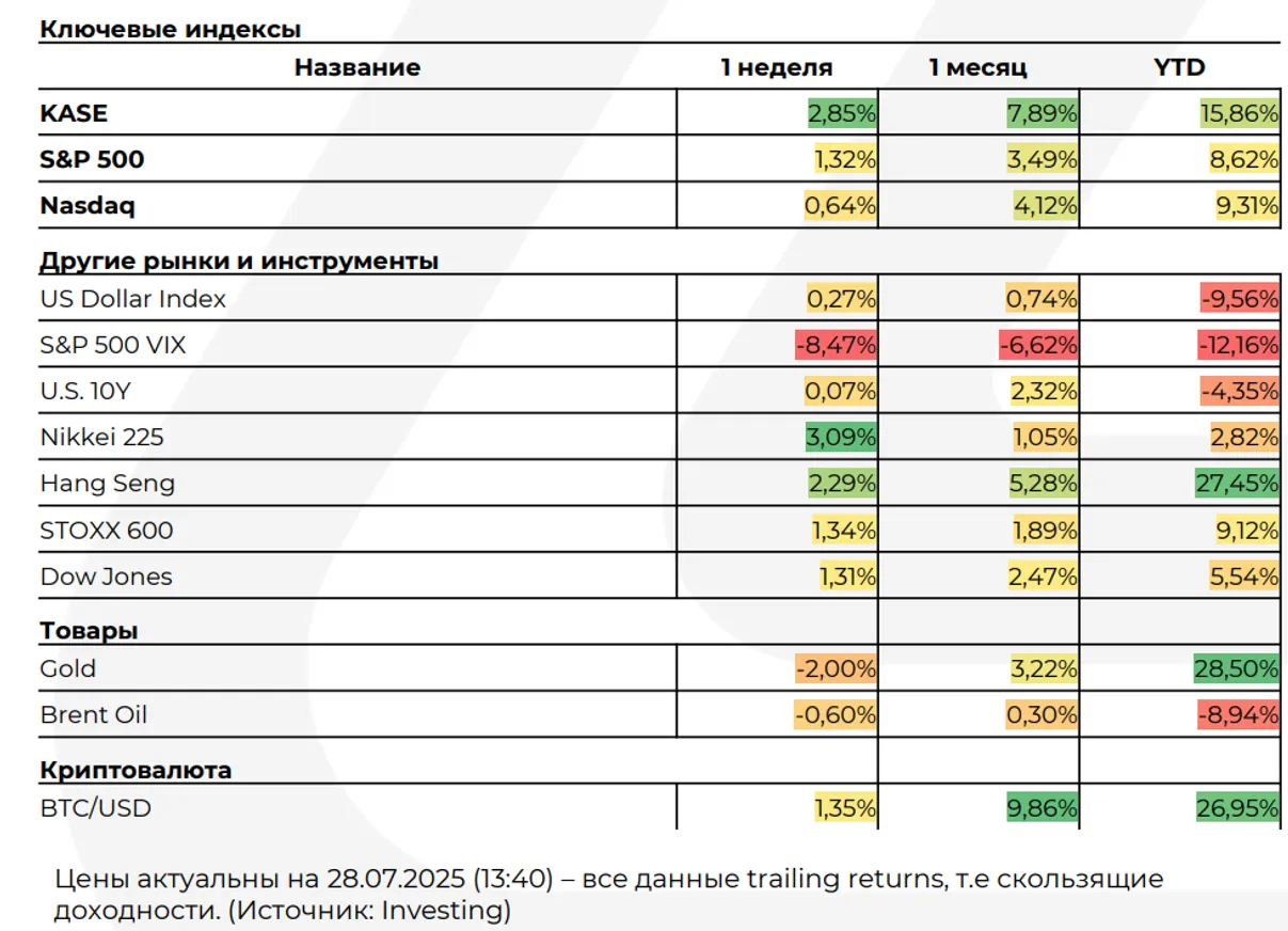 Обзор рынков за 21-25 июля 2025 года подготовил аналитик Департамента аналитики и исследований BCC Invest Алдияр Ануарбеков.