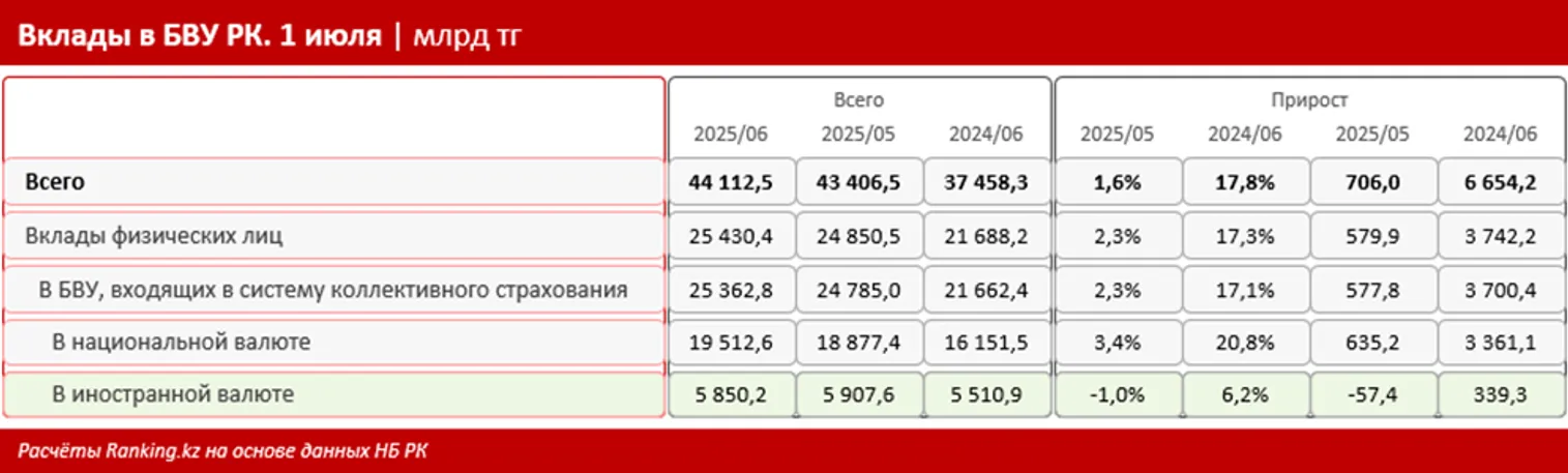 Для справки: в целом портфель вкладов в БВУ РК к июлю текущего года достиг 44,11 трлн тенге.
