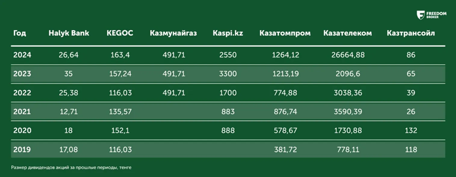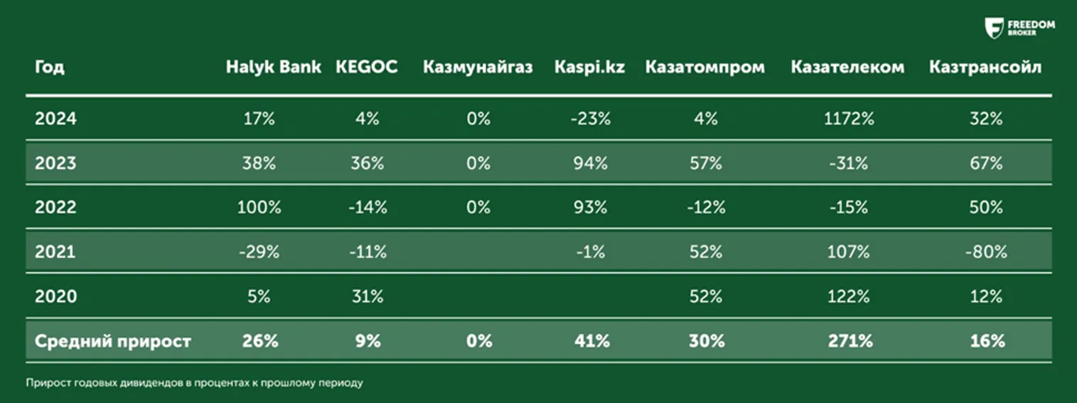 Для казахстанского фондового рынка дивиденды местных компаний являются довольно важной составляющей, порой оказывающей достаточно сильное влияние на котировки акций. Выплата дивидендов происходит в основном с мая по июнь, что привлекает достаточно большое количество инвесторов, чтобы создать сезонное движение рынка.