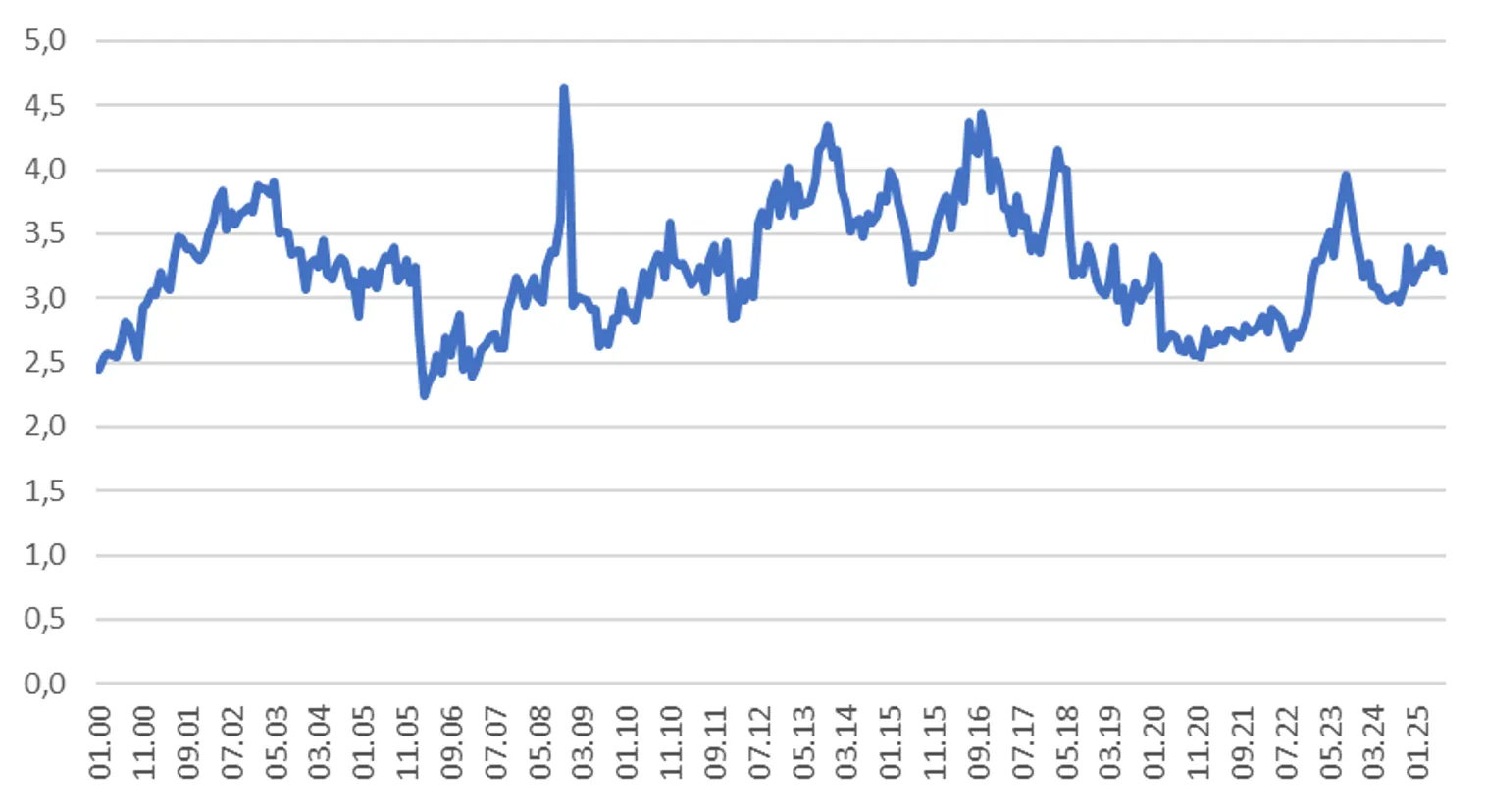 Диаграмма 1. Динамика денежного мультипликатора (М3/резервные деньги):