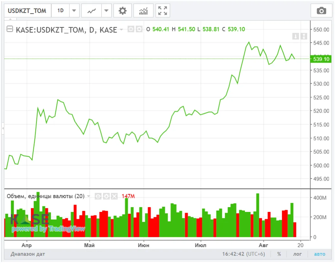 На сегодняшней сессии (10:40 ALA) курс USD/KZT составляет 538,2 тенге за доллар.