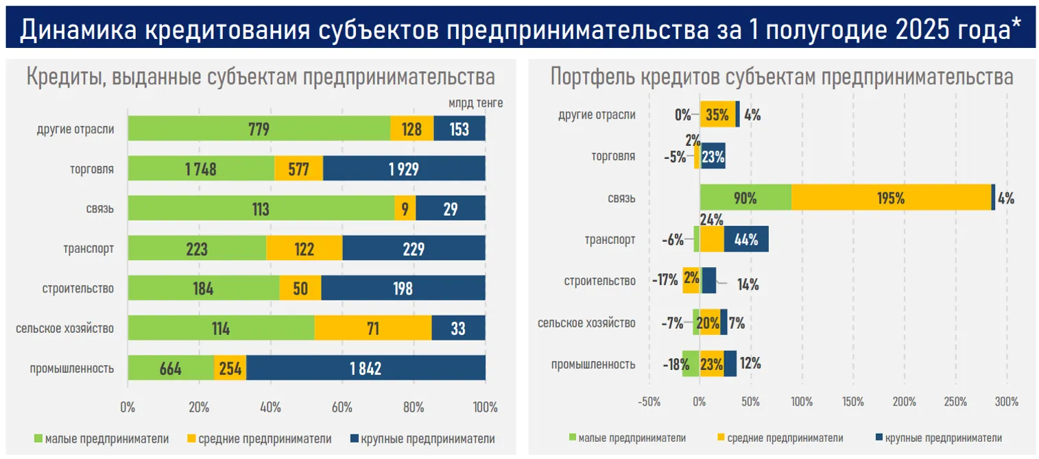 Аналитический центр Ассоциации финансистов Казахстана опубликовал обзор кредитования субъектов предпринимательства за первое полугодие 2025 года.