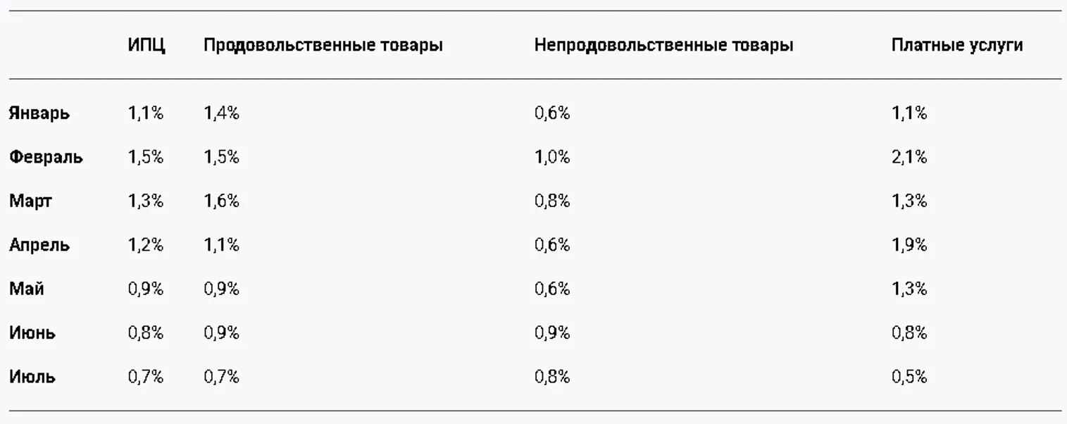 Таблица 1. Месячная инфляция за январь-июль 2025 года