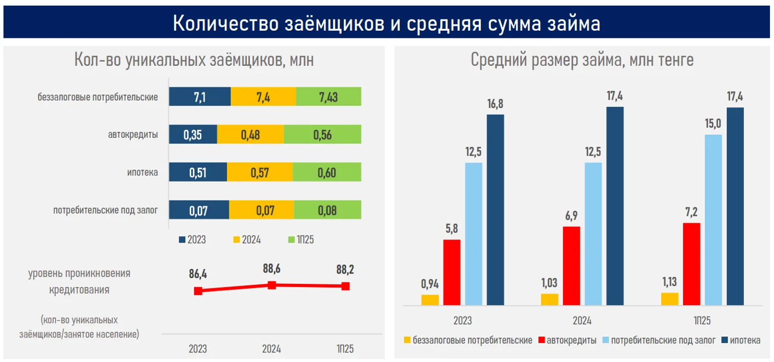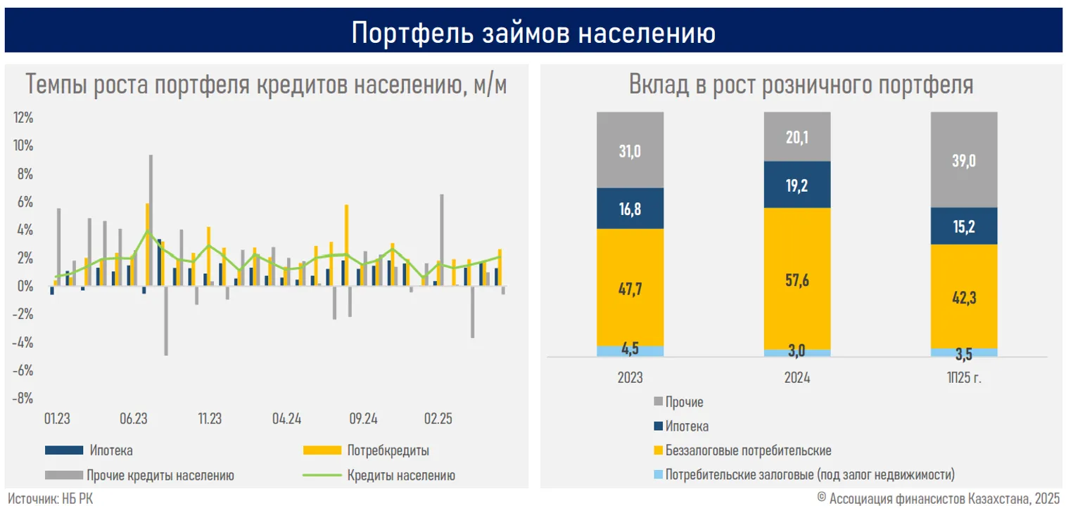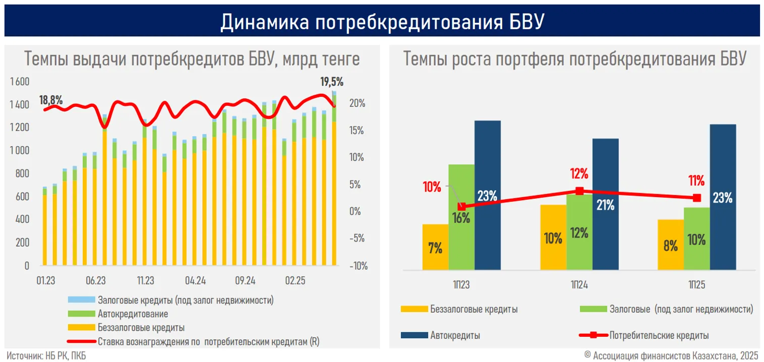 Аналитический центр Ассоциации финансистов Казахстана (АФК) опубликовал обзор рынка розничных кредитов банков второго уровня за первое полугодие 2025 года.