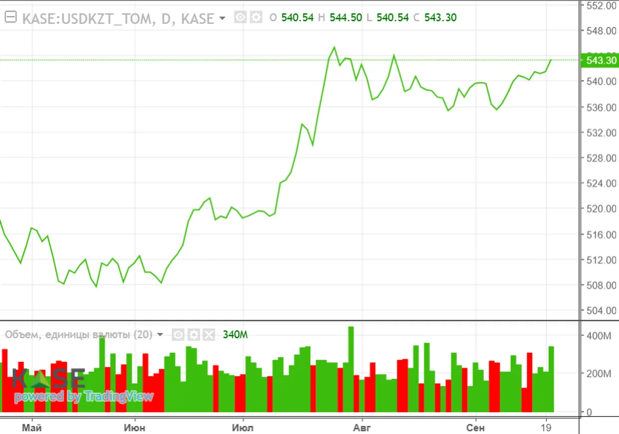 По итогам биржевых торгов понедельника курс по паре USD/KZT вырос до 542,93 тенге за доллар (+1,59 тенге). При этом торговая активность на рынке существенно возросла: совокупный объём торгов составил 340,3 млн долларов против 201,8 млн днём ранее. Подобная динамика курса нацвалюты могла быть связана как с внешними, так и с внутренними факторами. В числе первых можно выделить снижение нефтяных котировок и рост индекса доллара США. Что касается ситуации на локальном рынке, то активные покупки инвалюты могли осуществляться для оплаты импорта и обслуживания внешних обязательств, объёмы которых традиционно увеличиваются в конце каждого квартала.