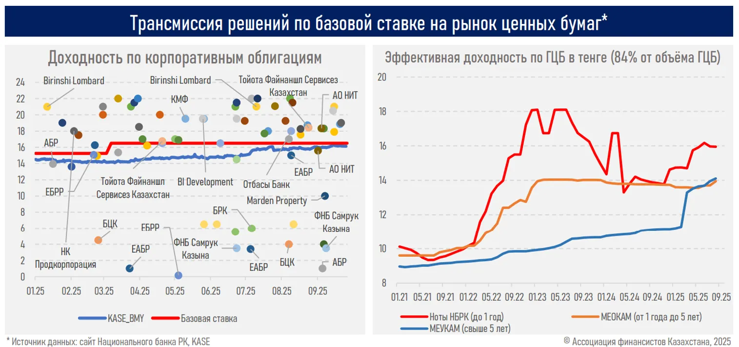 Аналитический центр Ассоциации финансистов Казахстана (АФК) представил озор процентных ставок на финансовом рынке Казахстана на 1 октября 2025 года.