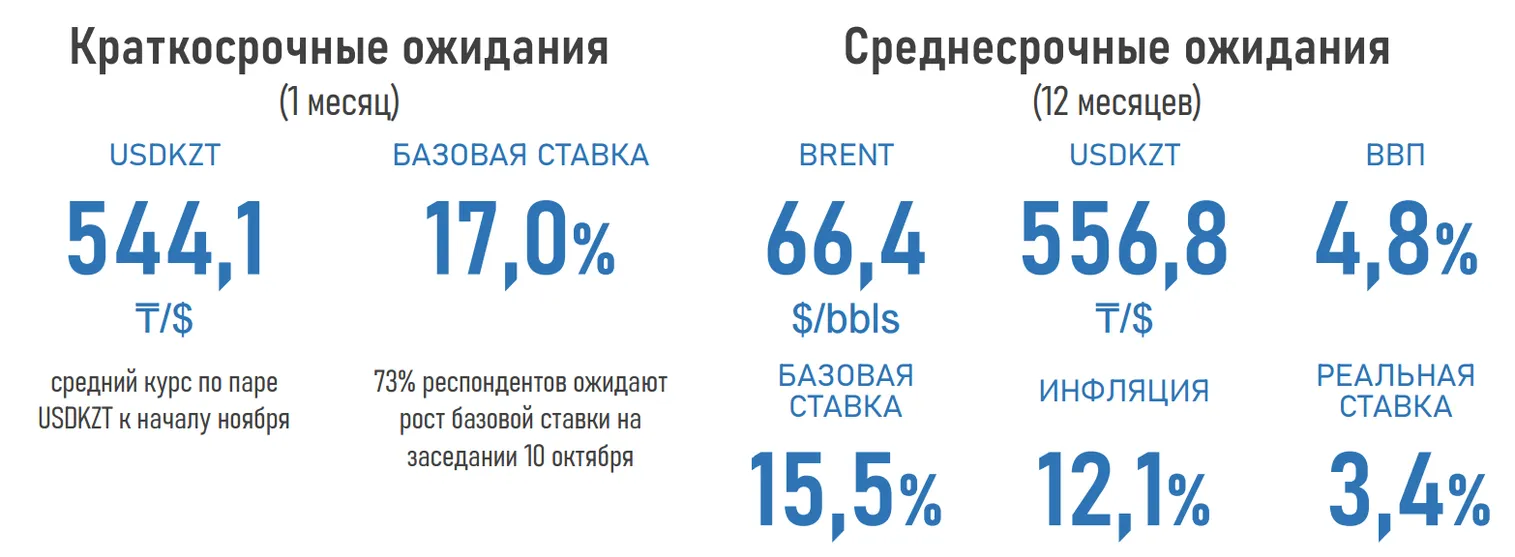 Аналитический центр Ассоциации финансистов Казахстана (АФК) представил результаты очередного опроса профессиональных участников финансового рынка в отношении некоторых индикаторов в октябре 2025 года.