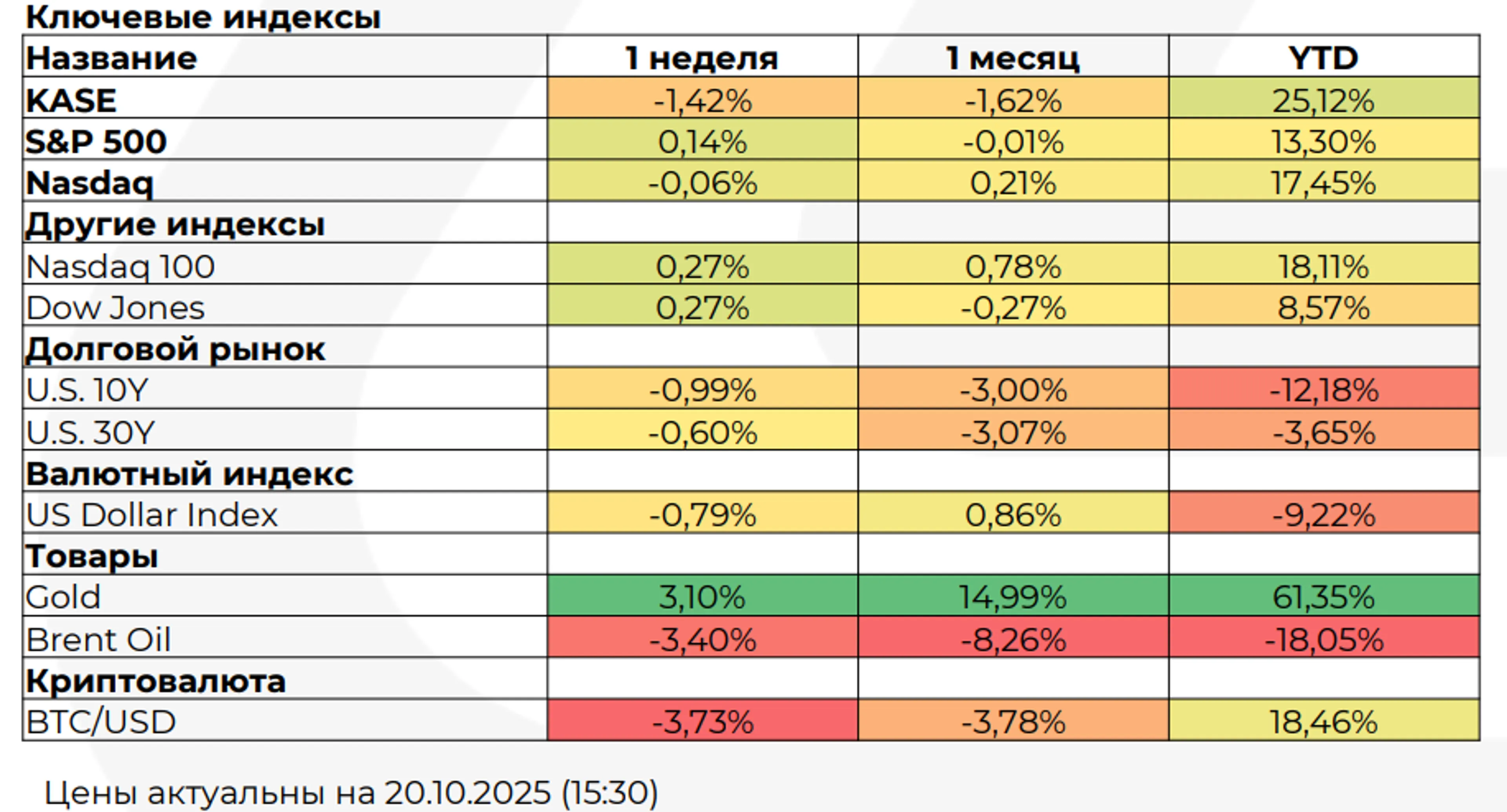 Обзор рынков за 13-17 октября 2025 года подготовил аналитик Департамента аналитики и исследований BCC Invest Алдияр Ануарбеков.